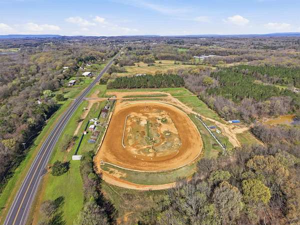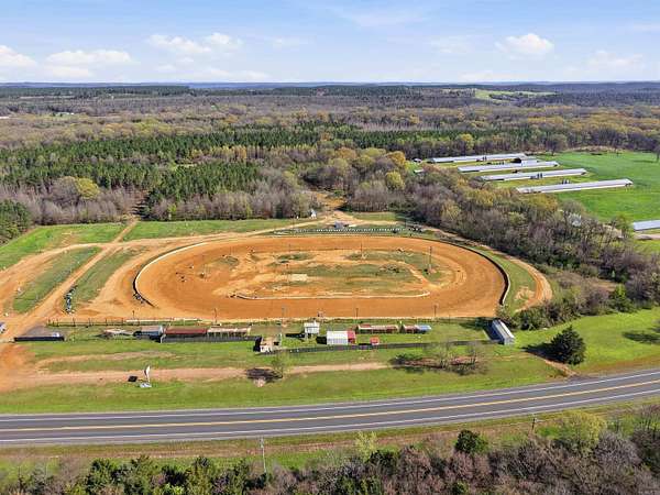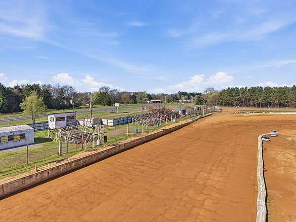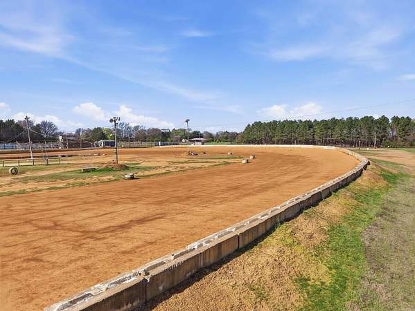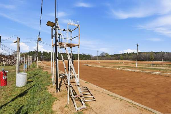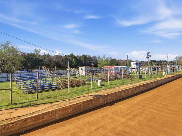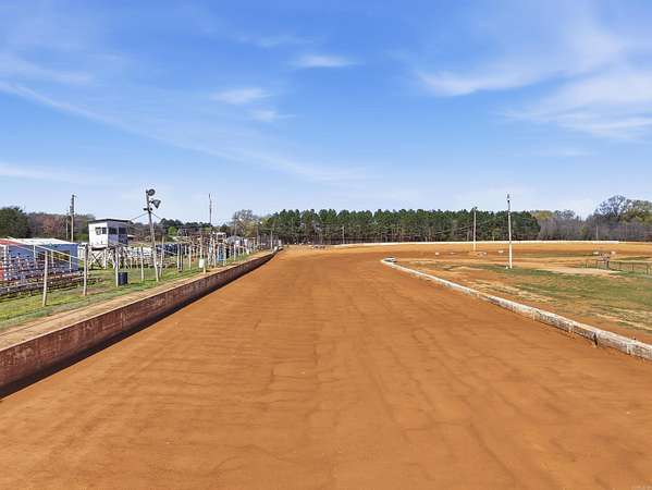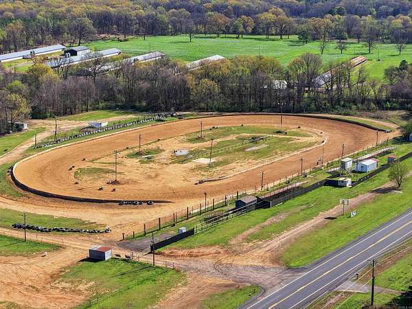 Unique Business Opportunity! Red clay racetrack situated on approximately 15± acres, offering incredible potential for motorsports events or a private club venue. Property includes two concession stands and a ticket booth, and has been approved by the Arkansas Department of Energy & Environment. The facility can accommodate 1,000+ spectators with lawn chair seating and features pit crew bleachers. Amenities include sound system, lighting, pit area, and scales, plus a pump pond used for track maintenance. Restroom facilities include 4 women’s toilets, 3 men’s stalls, and 2 urinals on the spectator side, along with additional restrooms on the pit crew side (2 women’s and 2 men’s). Property also features quarter-mile highway frontage and two septic systems