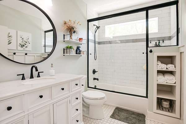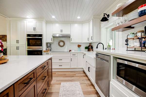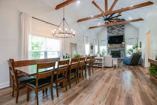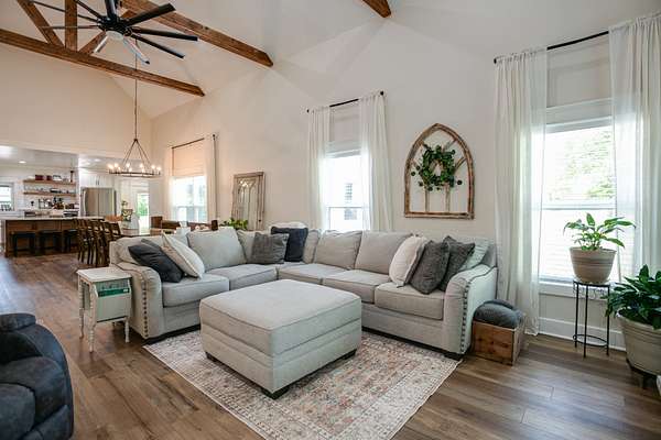 Reimagined from top to bottom in 2022, this property delivers the feel of new construction with the character and space today’s buyers are searching for. Inside, a dramatic 16-foot vaulted ceiling with exposed wood beams anchors the open-concept living area, creating a light-filled space ideal for both everyday living and entertaining.