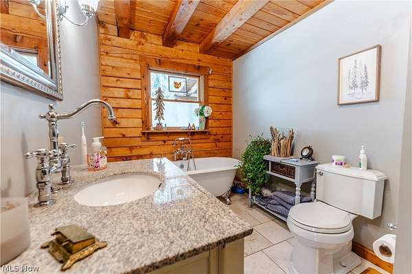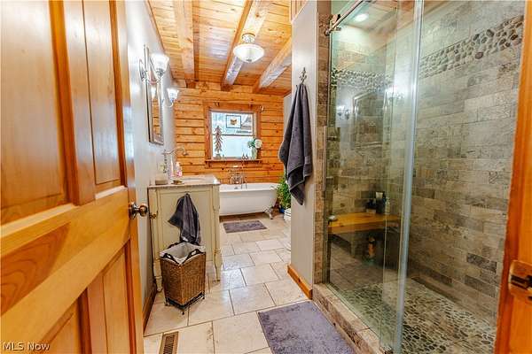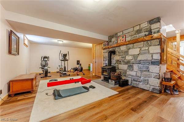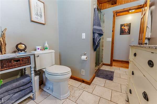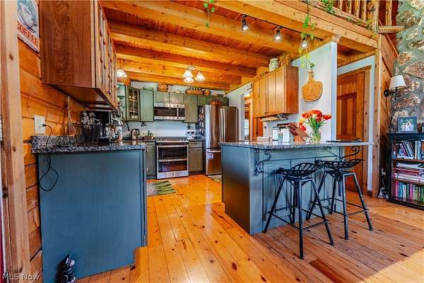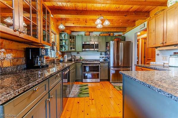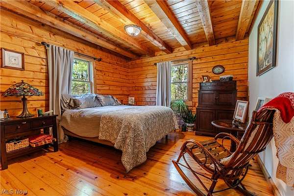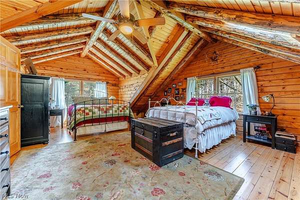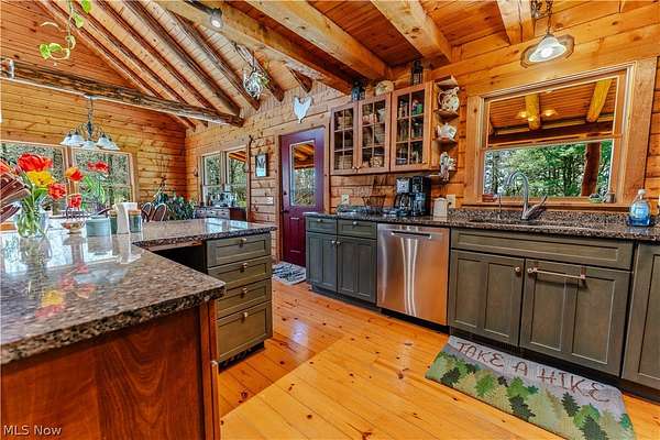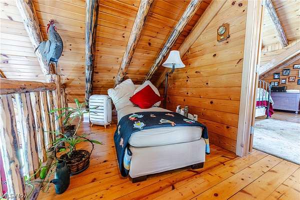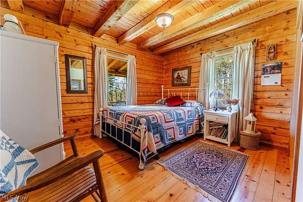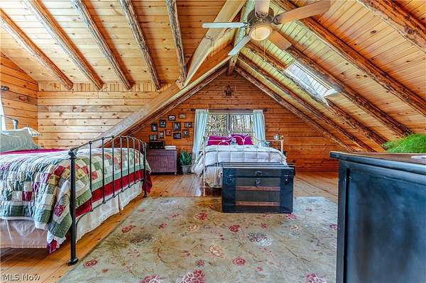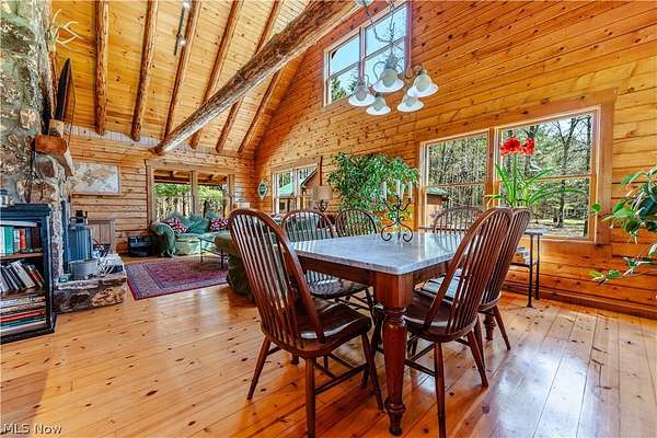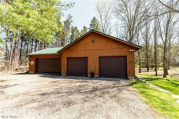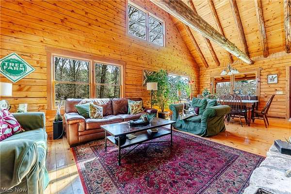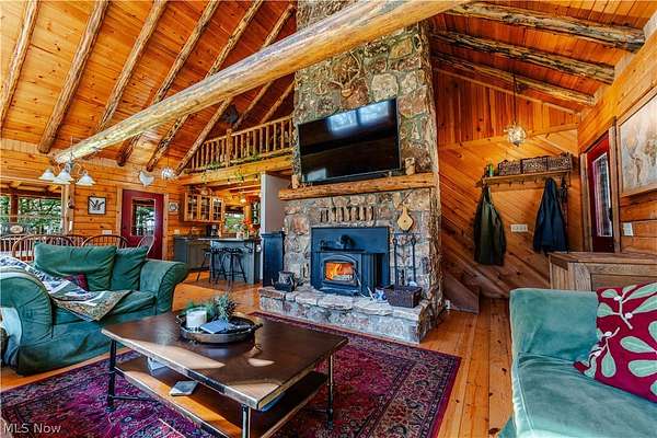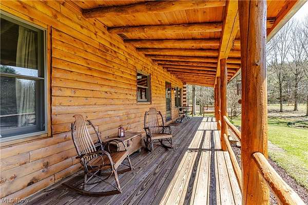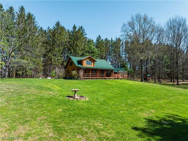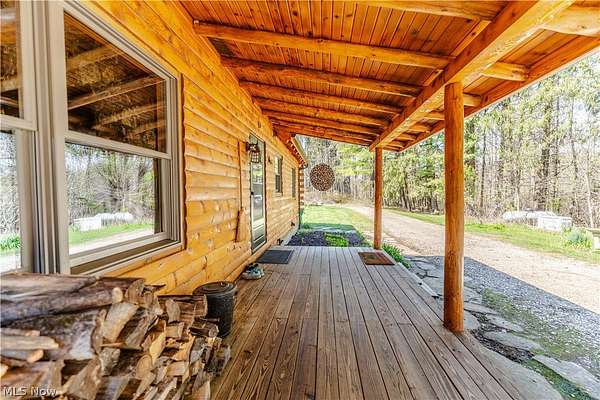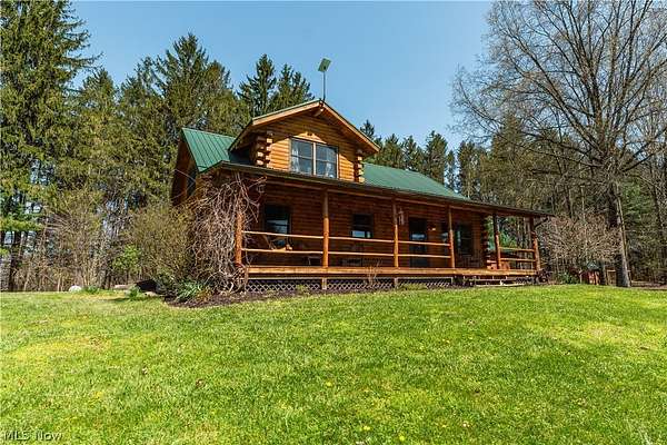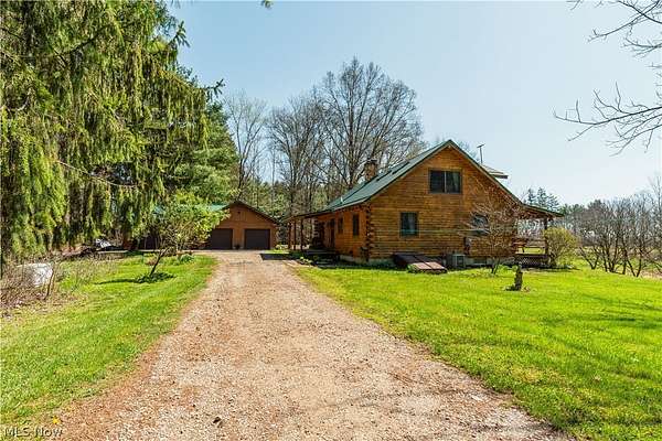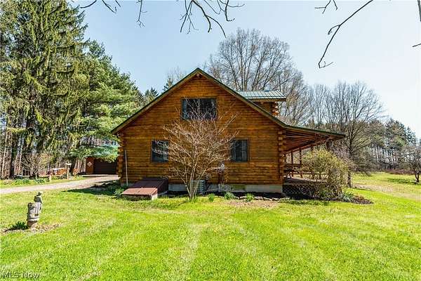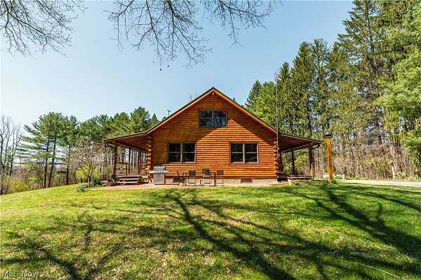 Beautiful 3-bedroom, 2-bath log cabin set on 71 private acres, all within walking distance of Tappan Lake. The main level is beautifully finished and full of rustic charm, featuring a stunning floor-to-ceiling stone fireplace, cozy wood-burning heat, and hand-chiseled exposed log beams. The recently updated kitchen includes newer appliances and flows seamlessly into the open dining and living areas. This level also offers two bedrooms and a nicely updated full bathroom. A spacious loft overlooks the main floor and serves as a large third bedroom, adding to the cabin's warm, open feel. The finished basement provides additional living space with a full bathroom, a large entertainment or family room, multiple storage closets, and a utility area. Step outside and you'll quickly see what sets this property apart. The setting is truly second to none, offering complete privacy and endless possibilities-whether you want to build additional structures, tend a garden, or keep animals. The property already features a 26' x 56' shop/garage and an established garden area. The land lays beautifully, with gently rolling terrain, valleys, natural pinch points, and a long ridge top tying it all together. For the hunters out there, the hunting potential here is excellent, with abundant wildlife sign, surrounding wooded acreage, and multiple ideal locations for food plots and stand setups. The timber is also a valuable asset, with a strong stand of quality trees approaching harvest age. If you're looking for a property that truly has it all, this is it. Schedule your showing today before this one-of-a-kind opportunity is gone.