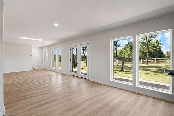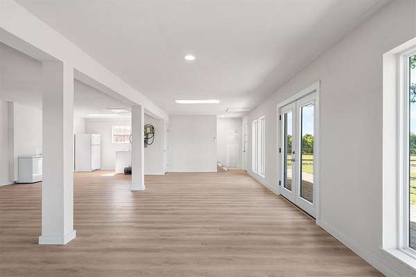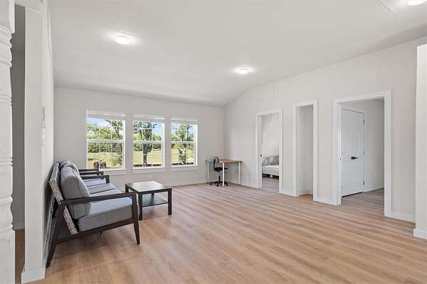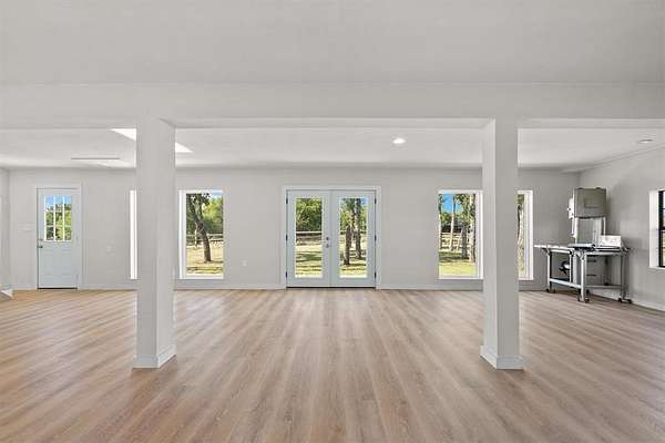 Escape to your own private paradise on this charming 2-bedroom, 1-bathroom 27.5 acre retreat that perfectly balances modern comfort with rural tranquility. This thoughtfully renovated home features a nearly new roof, enhanced life-proof vinyl flooring with mold-free felt backing, and quartz kitchen countertops paired with upgraded appliances including a farm sink that would make any chef smile.The property truly shines with its impressive sustainable features, including solar panels with multiple batteries ensuring energy independence, while high-speed fiber optic internet keeps you connected to the world. The new mini-split heating and cooling system provides year-round comfort, and the entire property comes pre-wired for security systems with an electric front gate for privacy. Outdoor enthusiasts will discover two fully stocked ponds perfect for fishing and a chicken coop, while deer and wild hogs roam the cross-fenced property providing excellent hunting opportunities. A deer stand with internet access adds a modern twist to traditional hunting experiences. The included barn with enclosed shop offers versatile storage and workspace possibilities.With its strategic location offering both seclusion and accessibility, this property presents exceptional rental income potential or makes an ideal weekend getaway. The combination of modern amenities, sustainable energy systems, and abundant wildlife creates a unique opportunity whether you're seeking a peaceful retreat, investment property, or outdoor adventure basecamp. Additional conveniences include three-phase electricity, and a storage container.