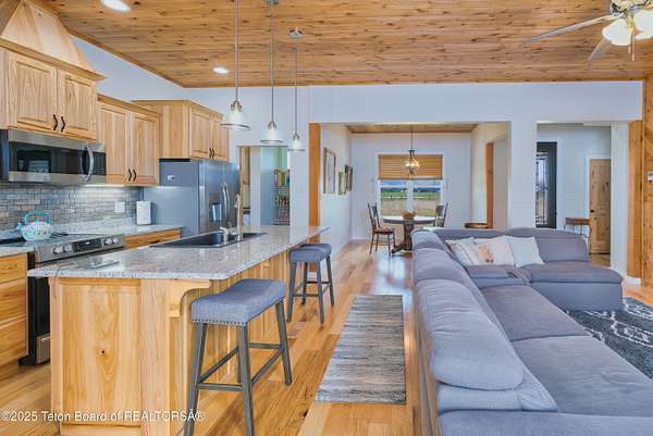 This newly built 1,925 sq ft home offers 4 bedrooms and 3 bathrooms, situated on a spacious 3.8-acre lot in Swan Valley, Idaho. The residence features an open floor plan with modern finishes throughout, providing ample space for family living and entertaining. The property's sizable acreage boasts a new pond enhancing the natural landscape. Additionally, multiple RV hookups & bath house are available, offering convenient and comfortable parking spaces for recreational vehicles, making it perfect for extended visits or hosting guests. A second 1,000-gallon septic tank further supports potential expansion on the property. Located along the Swan Valley Highway, the property offers convenient year-round access. This strategic location ensures easy travel regardless of the season. The well-maintained highway provides a reliable route for commuting, deliveries, and visitors, enhancing the property's overall accessibility and value. This property's combination of features and potential expansion enhances the property's functionality and appeal for outdoor living and recreation.