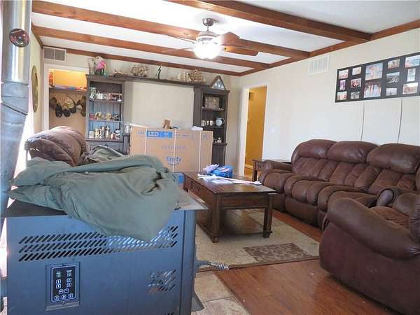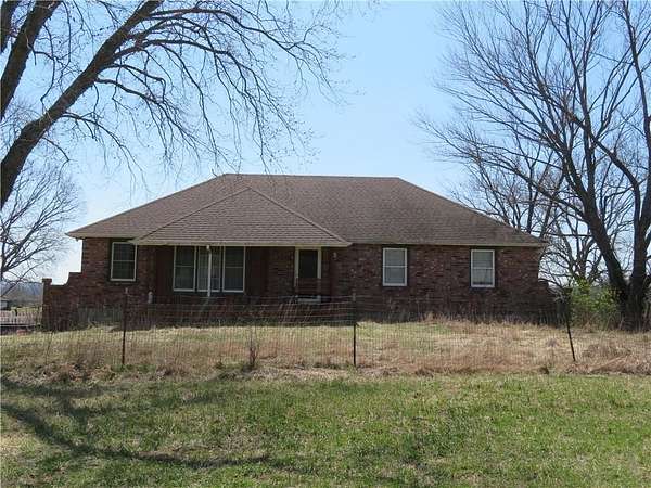 Est $2,638/moFantastic location for this brick ranch style home on 10.39 ac. m/l! Blacktop frontage NW of Paola provides for great commuter access! Bring your critters to the fenced pasture and pond! Detached garage/workshop, attached double garage, and loafing shed are all included! This property is priced below Miami County tax valuation and a recent appraisal do to the clean up and updating needed! Bring your time, skills and effort to gain sweat equity immediately!