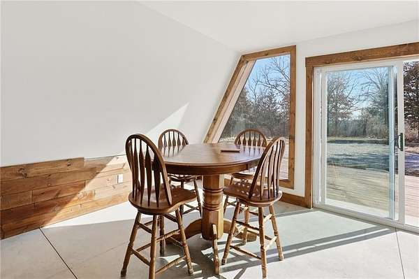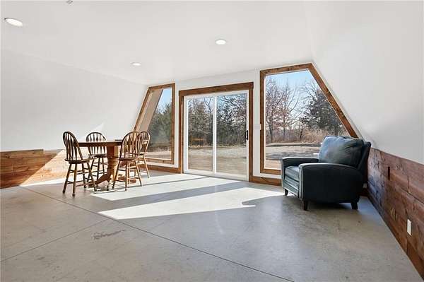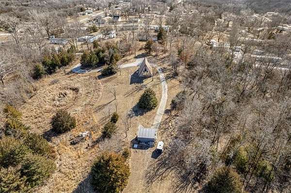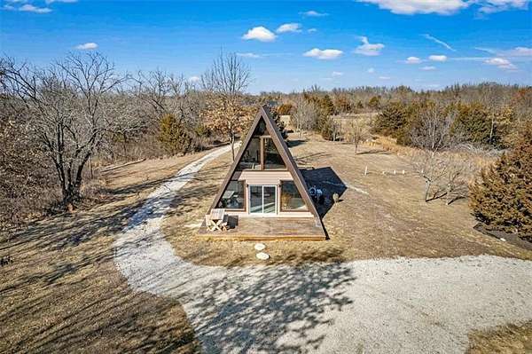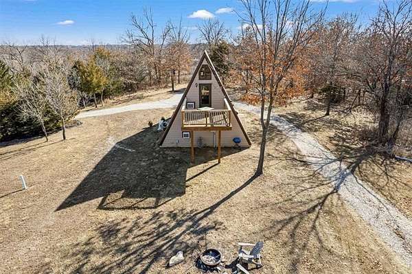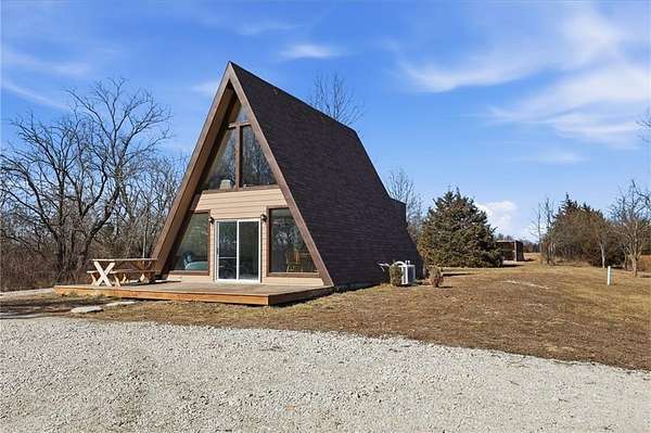Beautiful A-frame sitting on just under 6 acres. Get away from the city life and enjoy the beautiful country as you sit on one of your two decks and enjoy all mother nature has to offer. With plenty of deer and rabbit awaiting the hunter in you. Listen to the frogs as you enjoy the peace and quiet out of the hustle and bustle of the city. With one bedroom one bath this home may not be big but it is beautiful with large windows that let in the natural light that allows you to bring mother nature indoors. Come see for yourself and find out what country living is all about. The acreage allows for a variety of uses, including outdoor recreation, gardening, and hunting. Mature surroundings and open space enhance the rural feel while offering practical use of the land. Located in the Excelsior Springs area with convenient access to major roadways, this property offers a balance of rural living and everyday convenience.