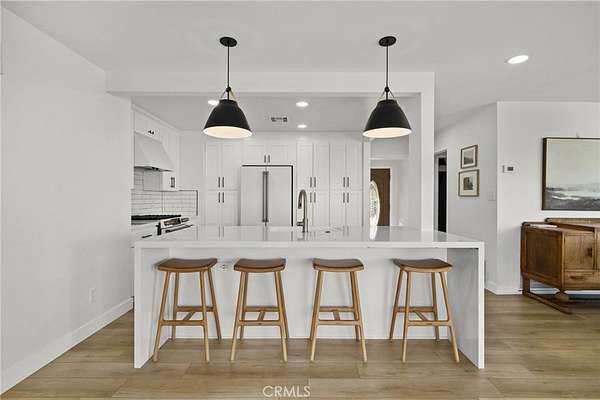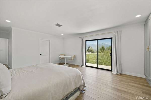 Perched at the end of a quiet cul-de-sac in the hills of Redlands, this beautifully remodeled single-level home sits on over an acre and offers privacy along with breathtaking panoramic views of the city and surrounding hills. Recently updated with new luxury vinyl flooring, an upgraded kitchen, and remodeled bathrooms, the home blends modern comfort with timeless style. Step inside to a true culinary dream of a kitchen, offering ample cabinet and countertop space, luxury appliances, and picturesque windows that perfectly frame the stunning views beyond. The adjacent living room continues to showcase these incredible vistas and features a cozy fireplace, creating the perfect setting for relaxing evenings or movie nights with family and friends. The luxurious executive suite serves as a private retreat, featuring direct access to the covered patio and beautiful picture views. The attached spa-inspired bathroom showcases a massive walk-in shower, dual sinks, and new tile finishes. Three additional bedrooms and two full bathrooms provide plenty of space for family or guests, including one bedroom with its own attached bathroom for added privacy. A conveniently located laundry room sits near two of the bedrooms. Thoughtful built-ins add both function and luxury, including a mudroom area with coat hooks, bench seating, and storage. Just adjacent is a built-in coffee or beverage bar featuring two wine refrigerators, additional cabinetry, and counter space, adding a sophisticated touch ideal for entertaining. Step outside to an expansive backyard designed for both relaxation and recreation. A huge patio area is perfect for alfresco dining, gathering around the fire pit, or enjoying outdoor activities like riding bikes or scooters. A covered patio off the living room and kitchen provides the perfect space to unwind while taking in the sweeping views across the property and city below. The acre-plus lot offers room for horses and includes additional access to the lower portion of the property, making it convenient for RV storage, trailers, or equestrian use. A storage shed adds extra utility. We have drafts on file for future pool enthusiasts as well! The property also benefits from private water shares through Western Resource Water, offering a more cost-effective option for landscaping, while solar panels provide energy efficiency. Don’t miss this rare opportunity to own a private, view-filled South Redlands home with space, style, and endless possibilities.