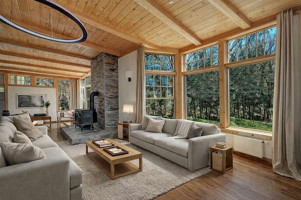 Set on 5.4 beautifully landscaped acres in one of Morristown’s most desirable neighborhoods, this custom 4-bedroom, 4-bath timber-frame home offers refined Vermont living with a rare combination of privacy, efficiency, and year-round recreation. With over 4,000 sq ft of finished space, the home welcomes you with abundant natural light, vaulted ceilings, and stunning views from every angle. The open-concept main level features a warm and inviting kitchen, a wood stove for cozy evenings, and direct access to a large deck, hot tub, and screened gazebo — perfect for entertaining or unwinding. The full walkout basement is completely finished, and the well-lit walk-up attic offers excellent potential for additional living space or a creative studio. A spacious primary suite includes its own bath and scenic outlooks. An attached two-car garage ensures year-round convenience. Outside, enjoy your own new vineyard, a large solar array for energy savings, and a quiet, private setting just minutes from Stowe, Morrisville, and the best of Vermont’s skiing, biking, hiking, and craft beer scene. Whether you’re entertaining in summer or heading to the slopes in winter, this is a four-season home built for beauty and ease. Some images are virtually staged.