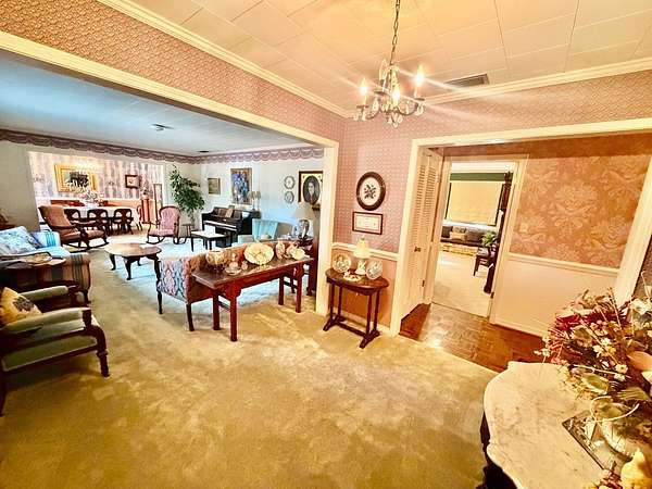 Welcome to a home that feels straight out of a storybook - lovingly built, beautifully preserved, and rich with character you simply cannot recreate today. Situated on 13+- private acres in the heart of Jackson, this one-story, custom-built 1971 residence offers 4 bedrooms, 3 full baths, and two spacious master suites, making it ideal for multi-generational living or those who value space and comfort. From the moment you step inside, you can feel how well this home was built. Original parquet flooring, solid wood interior doors, vintage wallpaper, and a charming pink bathroom set the tone for timeless style and craftsmanship. Thoughtful details like the original wall-mounted phone box add to the home's authentic vintage appeal - every room tells a story. Both formal and informal living and dining spaces provide flexibility for entertaining or everyday living, while the gas-log fireplace (easily convertible back to wood-burning) anchors the home with warmth and charm. One of the true highlights is the gorgeous sunroom, fully heated and cooled and constructed with old Chicago-style brick, offering a cozy retreat year-round with views of the surrounding property. Each bedroom features generously sized closets, providing storage rarely found in homes of this era. The kitchen appliances remain (including refrigerator - note: fridge has an issue), and the home also features: oCircular driveway oCovered carport oSidewalks leading to a cooking shed and barn oOutdoor patio with covered pergola oCooking shed & barn for hobbies, entertaining, or storage Adding incredible value and flexibility, this property offers road access from Cherokee Drive, Jamison Street, and Sherwood Drive, creating the potential to sell off lots, build additional homes, or allow family to build with their own private entrances. This is not just a house - it's a home filled with love, memories, and craftsmanship that has stood the test of time. Properties like this are rare.