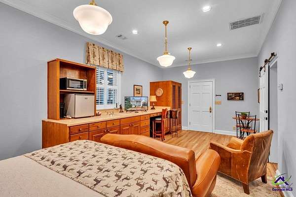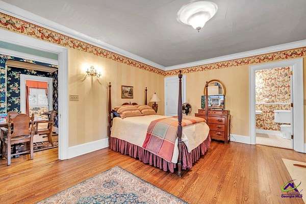 Step into a piece of Fort Valley history with this breathtaking Victorian estate, nestled on over two lush acres in the prestigious Everett Square Historic District. This move-in-ready masterpiece perfectly blends 19th-century grandeur with modern luxury—a rare find for the discerning buyer! Why You’ll Love This Home: Historic Artistry: Experience unparalleled craftsmanship featuring hand-painted English wallpaper, original hardwood floors, and stunning stained and leaded glass windows. Modern Comfort: A massive, updated chef’s kitchen and sleek, contemporary bathrooms make daily living a breeze. The Grounds: Relax on the exquisite back deck or listen to the soothing sound of rain on the classic tin roof. The property features a circular driveway, professional landscaping, and a peaceful atmosphere. Bonus Spaces: Includes an adorable detached guest house, a matching barn with a lean-to, and a greenhouse—all equipped with water and power for your hobbies or storage needs. This is more than a home; it's a legacy. Enjoy the serenity of expansive acreage while being part of a vibrant, historic community. Exclusively for qualified buyers. Contact us today to schedule your private tour of this extraordinary estate. Appraisal on hand. This home was once owned by the Luce family of Bluebird Bus fame.