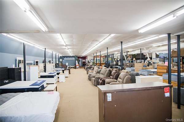 Prime commercial opportunity in the heart of Monticello! Majek Furniture, located at 314 East Broadway, offers a versatile and expansive property ideal for retail, warehouse, or mixed-use operations. The main 13,000 sq ft showroom features impressive 12-foot ceilings, creating an open and inviting retail environment. Supporting the retail space are multiple functional areas including a 5,000 sq ft warehouse, an additional 7,200 sq ft warehouse, and 1,200 sq ft of adjoining flex space, providing exceptional storage, distribution, or workspace flexibility. A newly constructed 60' x 120' x 14'6" warehouse (2023) with a poured concrete slab and three 12' x 12' commercial overhead doors adds significant value and operational capacity. Recent upgrades include a 2023 sprayed acrylic roof (10+ year lifespan), two furnaces (2012), and a new electric/propane combo air conditioning system, ensuring efficiency and comfort throughout the property. Security is enhanced with a PN alarm system installed in 2018. The property is equipped with 3-phase electric, municipal sewer and water, and offers excellent infrastructure for a variety of commercial uses. Interior features include five office spaces, a large conference room, and two half bathrooms, making it ideal for both administrative and operational needs. Decades long successful furniture business to be sold with property at the right price. Strategically located on East Broadway with strong visibility and accessibility, this property presents a rare opportunity to own a well-maintained, high-capacity commercial space in Sullivan County. Within 2 hours of NYC and 1.5 miles from State Route 17.