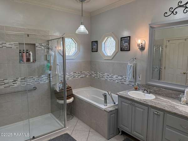 - 9+ ft Ceiling, Attic Access, Built-Ins, Primary Bath, Separate Shower, Varied Ceiling Heights