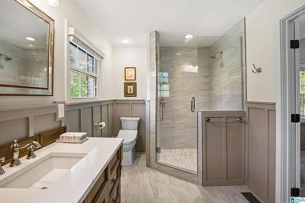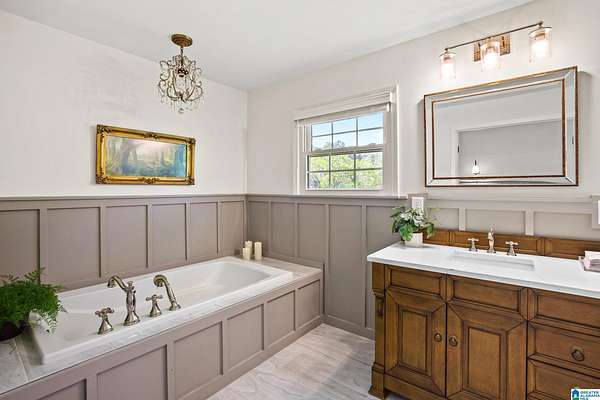 - Garden Tub, Linen Closet, Recess Lighting, Separate Shower, Walk-In Closets