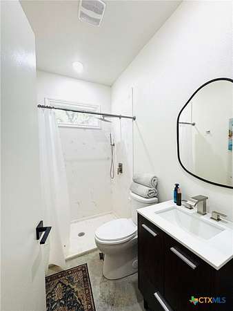 Welcome to this stunning 4-bedroom, 3-bath metal home nestled on just over 5 acres outside the city limits. Designed with comfort and functionality in mind, this all-electric home offers approximately 1,500 square feet of living space, including an additional 300-square-foot guest suite under the same roof. The main living area features an open-concept layout filled with natural light and a warm, inviting feel. The chef's kitchen is equipped with abundant cabinetry, soft-close drawers, ample counter space, and a long solid wood bar perfect for gathering. A striking 15-foot copper metal ceiling connects the kitchen and den, where large windows frame peaceful country views and an electric fireplace creates a cozy place to unwind. The split-bedroom design provides privacy & versatility. Two generously size two bedrooms. Spacious extra bathroom with a walk-in shower, single-sink vanity. The primary suite, located on the opposite side of the home, feels like a private retreat with large windows overlooking deer-friendly surroundings. Primary bath features a generous wheelchair-accessible shower & convenient access to the laundry room. Polished concrete floors run throughout the home, a modern & low-maintenance . Attached under the same roof, a double carport leads to the additional 300-square-foot living space complete w/a mini-split unit, on-demand water heater, walk-in shower, & full bath-ideal for guests, homeschooling, or multigenerational living. Approximately 450-square-foot carport could remain as is or buyer could enclosed to create a spacious family room. Outside, a 6-foot-wide sidewalk wraps around one side of the home for easy yard access. The backyard offers a serene escape where you can relax to the sounds of nature, while the front of the property is tucked behind a row of trees for added privacy. This beautiful property is truly a must-see.