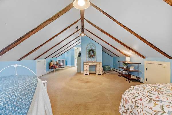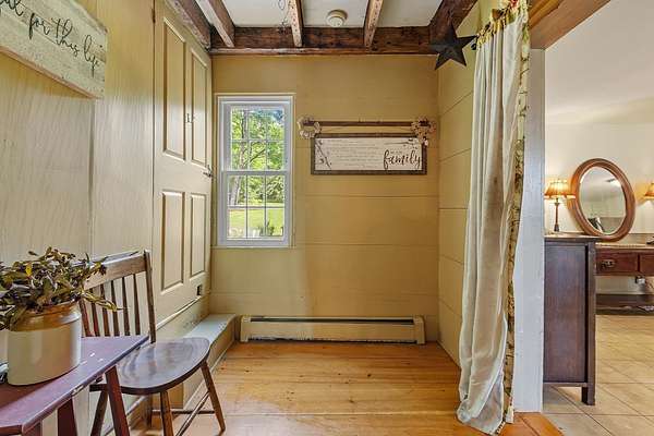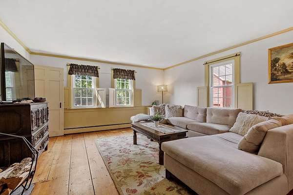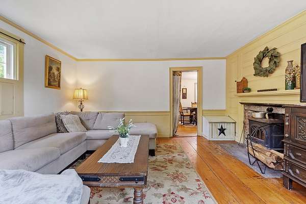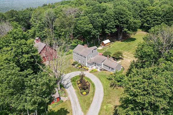 Discover this charming historic farmhouse nestled on 5 plus picturesque acres surrounded by beautiful maple trees and lush green lawn. Built in 1820, this home is filled with authentic character, spanning over 3,500 sq ft and featuring 4 bedrooms, 3 bathrooms, a great room, a formal living room, a den, a formal dining room, and a large eat-in kitchen perfect for family gatherings. Though the home could use some upgrades, It has much of its original charm like its working beehive oven, wide pine floors, four fire places, some equipped with woodstoves that create a cozy inviting atmosphere throughout. Relax on the sunporch or enjoy outdoor living on the spacious patio areas. The property features a large traditional barn, and an antique corn crib which lend to making this the perfect place for homesteaders. Unique to many homes, one might enjoy the handcrafted outdoor wood-burning sauna, set in a peaceful natural setting and a charming guest house featuring warm knotty pine walls, cathedral ceiling, and beautifully hand-sewn exposed wood beams, currently rented on Airbnb but could be used as your personal retreat. The expansive acreage offers endless possibilities, making this property a perfect place for those seeking tranquility, character, and modern comforts. Don't miss this rare opportunity to own a piece of history and make this your own!
