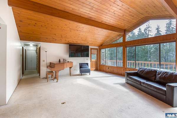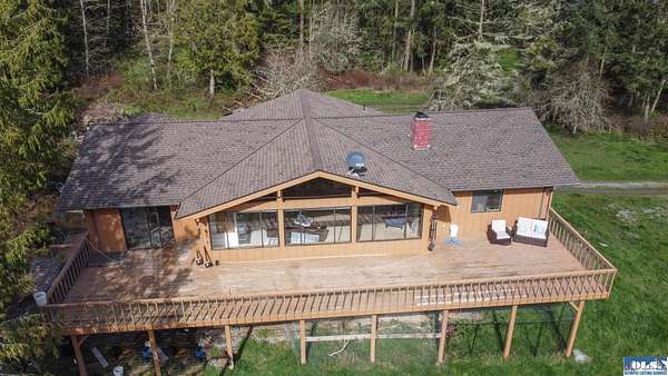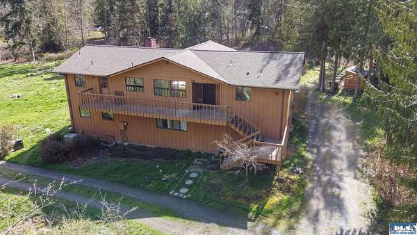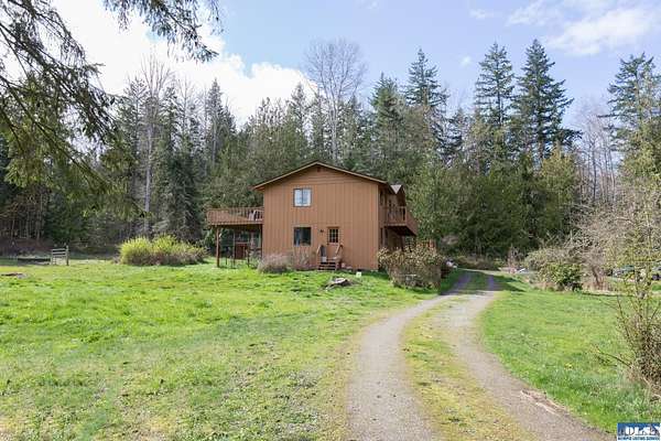 Nestled on 5 private acres in Sequim, this stunning 3,204-square-foot two-story home offers the perfect blend of space, comfort, and Pacific Northwest beauty. Surrounded by towering evergreens and mature trees, the property provides exceptional privacy and a peaceful, park-like setting. Inside, you’ll find three spacious bedrooms plus a dedicated office, ideal for working from home. The thoughtful layout also includes a cozy den, two separate living rooms for entertaining or relaxing, and a versatile workshop space. A beautiful wood-paneled ceiling adds warmth and character, while expansive windows throughout the home flood the interior with natural light and showcase serene views of the surrounding landscape. The circular driveway welcomes you home. The generous lawn offers ample space for outdoor gatherings, recreation, or simply enjoying the quiet beauty of nature.In addition to the main residence, the property features an impressive 1,230-square-foot detached garage/shop—perfect for hobbies, storage, projects, or extra vehicle space.This exceptional property combines privacy, functionality, and Northwest charm—an ideal retreat just minutes from all that Sequim has to offer.