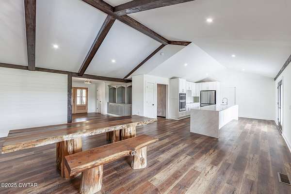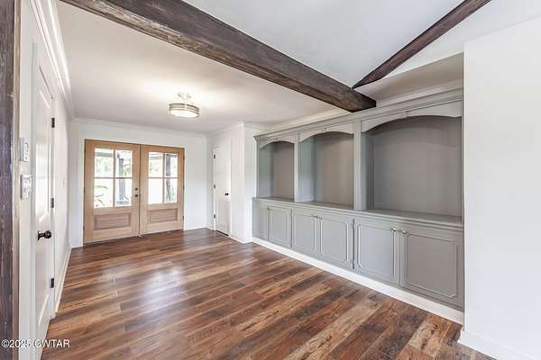 - Beamed Ceilings, Bookcases, Breakfast Bar, Ceiling Fan(s), Ceramic Tile Shower, Commode Room, Crown Molding, Eat-In Kitchen, Entrance Foyer, Granite Counters, High Ceilings, Kitchen Island, Open Floorplan, Pantry, Walk-In Closet(s)
