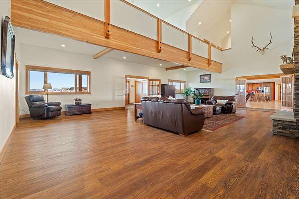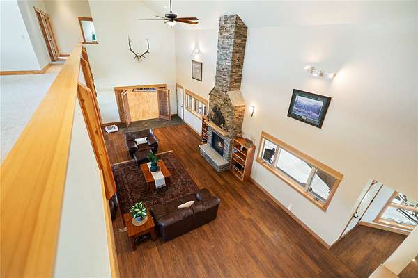Perfect multi-generational, move-in ready home offers tons of natural light and mountain views across the valley on over 4 acres. The expansive floorplan has room for everyone to have their own space and large living areas when you want to be together. Enter into the thoughtful spaces that include a formal living room with impressive stacked stone, gas fireplace, then a massive great room perfect for entertaining with large cook's kitchen including a 6-burner gas range, griddle, and three ovens for the chef in the family. A large primary suite includes gas fireplace and ensuite, with steam shower and soaking tub. Two additional ensuite bedrooms on main floor. Upstairs you'll find a living area with big mountain views plus a game room, four bedrooms and two full baths. The upstairs is accessible with electronic stair chair. Tons of extras including multi-zone radiant floor heating throughout, hot tub room, and gym area. Huge multi-car garage, heated & insulated, with a shop area for all your projects and toys. Above the garage is over 2000 sqft of unfinished space for your own vision. Large level lot with underground sprinklers and views of the Big Belts. Quick access to Helena and shopping. For complete list of this expansive home's extras, contact your agent.