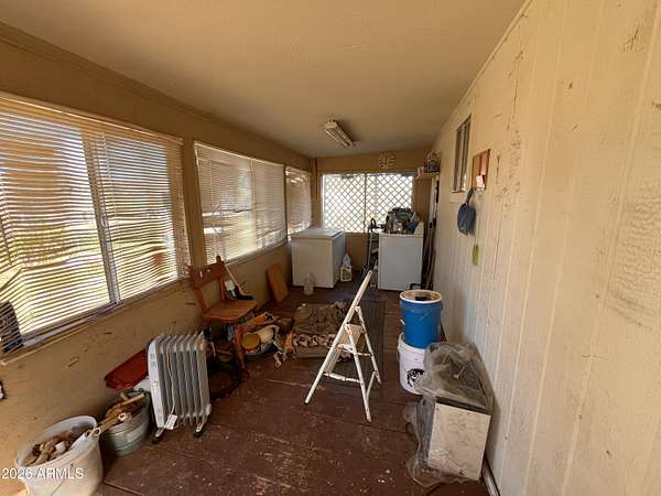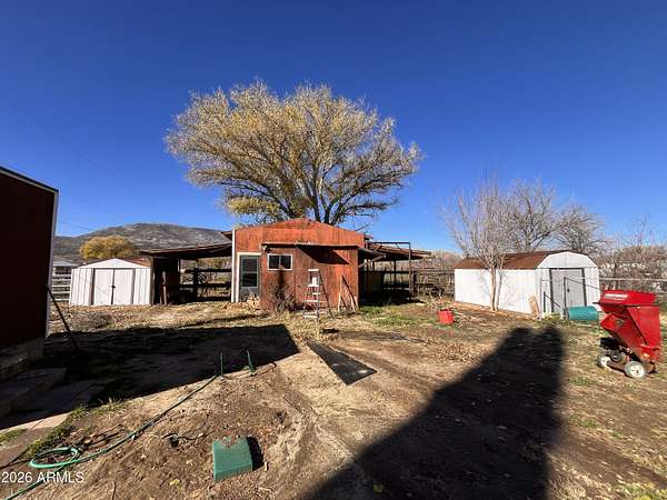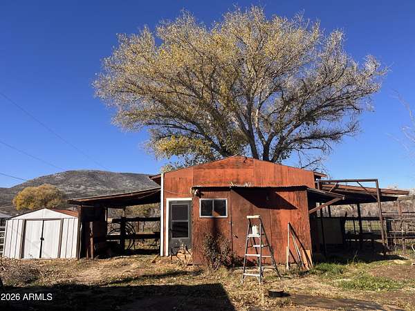 Set on over three acres of level, usable land in peaceful Skull Valley, Arizona, this unique country property offers endless potential and classic rural charm. The parcel features a 625 sq ft, 1-bedroom, 1-bathroom home along with multiple outbuildings, including sheds, a greenhouse, barn, well house, and a one-car carport-ideal for storage, projects, or agricultural use. Whether you're looking to renovate the existing home, expand it, or build a brand-new residence, this property provides the space and flexibility to bring your vision to life. Enjoy sweeping views of Black Mountain and the natural beauty of a seasonal wash running along the boundary line. With open fields and a strong well, the land is perfectly suited for horses, goats, chickens, or even that cow you've always wanted. The west-facing back porch is the perfect spot to relax and take in Arizona's stunning sunsets and temperate climate. The property is well established with mature fruit trees, including apple, cherry, peach, apricot, plum, and walnut. A rose garden and fragrant lavender add vibrant color throughout the spring and summer, while the rich soil makes this an excellent location for gardening. This is a rare opportunity to own a versatile, scenic country property with room to grow, create, and enjoy the quiet beauty of Arizona living.