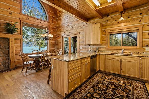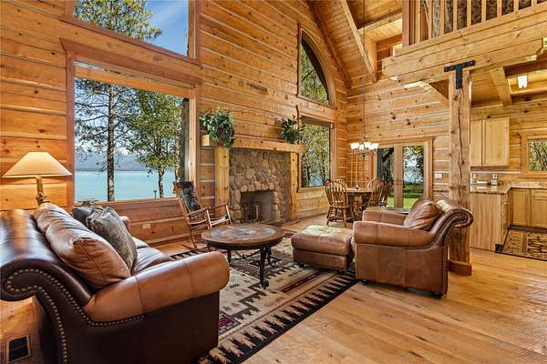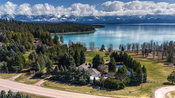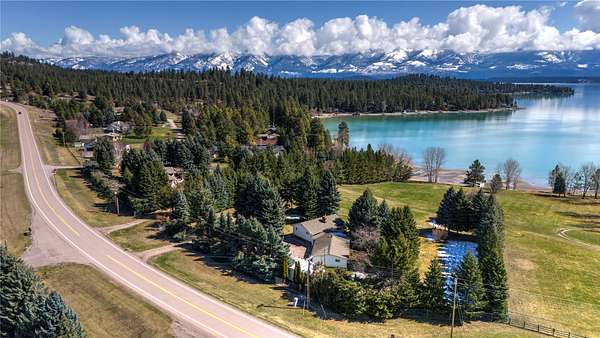 Experience the pinnacle of Montana lakefront living with this extraordinary 9.54-acre estate on the coveted shores of Flathead Lake's Rocky Point. Offering a rare combination of expansive land, architectural artistry, and multi-residence flexibility, this property is truly one of the crown jewels of the region. The main residence is a stunning hand-carved log cabin, featuring 2 bedrooms and 2 bathrooms, where rustic elegance meets refined craftsmanship. Vaulted ceilings, custom woodwork, and expansive windows frame breathtaking lake and mountain views, creating a warm and sophisticated retreat. Complementing the main home is a 3-bedroom, 2-bath guest residence, perfect for hosting guests or as a private sanctuary. What makes this estate truly exceptional is its scale. Spanning nearly 10 acres, this is one of the largest private lakefront parcels on Flathead Lake, offering unparalleled privacy, open rolling space, and legacy appeal. Enjoy over 550 feet of shoreline, pristine natural surroundings, and the kind of exclusivity rarely available on Montana's most iconic lake. Whether you're looking to create a luxurious family compound, an elegant seasonal getaway, or a generational investment, this Rocky Point masterpiece offers limitless possibilities in an unmatched setting.