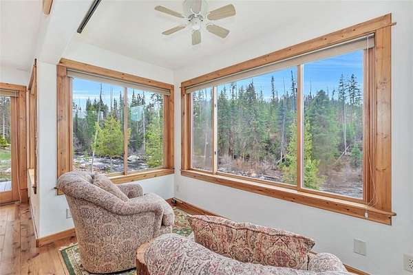 This one-of-a-kind river front property sits directly on the Elk River and is surrounded by USFS land. The house features an inviting covered front porch and an even more spectacular tiered back deck. There is simply no better place to be than sitting riverside while dining alfresco or simply kicking up your feet and enjoying nature's television. Path leads you down to the river where you can fish to your heart's content. Aside from the behemoth trout for the fisherman's delight the home frequently has other animal visitors, including eagles, osprey, stellar jays, ermine, fox, and elk. Inside the great room has hardwood floors with radiant heating, a river rock gas fireplace, and a sitting nook with river views. The kitchen has an adjoining dining area and den with wood burning fireplace. Upstairs is the primary suite with ensuite bathroom, walk-in closet with laundry, sunny sitting area, deck and balcony overlooking the river below. Leave the doors open all summer long to let the gentle sounds of the river relax you to sleep. On the main level is a second bedroom, bathroom, powder room, laundry and utility room. Also included on the 1.71 acre property is a casita for glamping guests, a large workshop, greenhouse, and multiple storage sheds providing plenty of places to store the gear needed for your mountain/river lifestyle. This quaint neighborhood also know as Zirkleville serves as the gateway to endless North Routt adventures. The property is just moments away from 3 lakes, 2 State parks, the Routt National Forest, the Zirkel Wilderness and the Elk River. Hunting, fishing, camping, hiking, snowmobiling and so much more are all just steps outside your door. The legendary Clark Store is just 5 miles away, which serves as a general store, eatery, coffee house, post office and community hub. Only 22 miles from Steamboat Springs, this home is looking for a new owner to embrace this enchanting river estate.