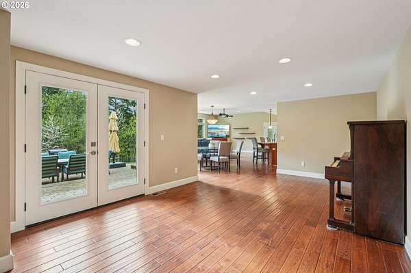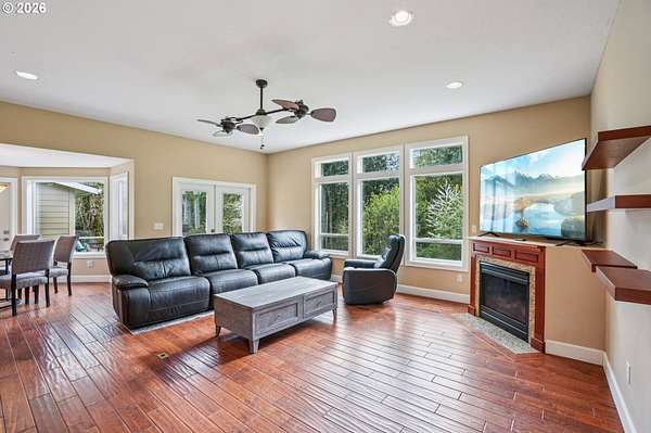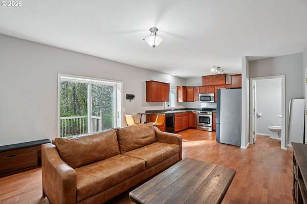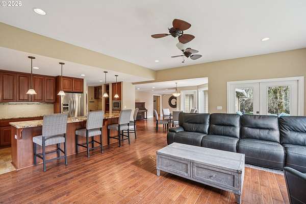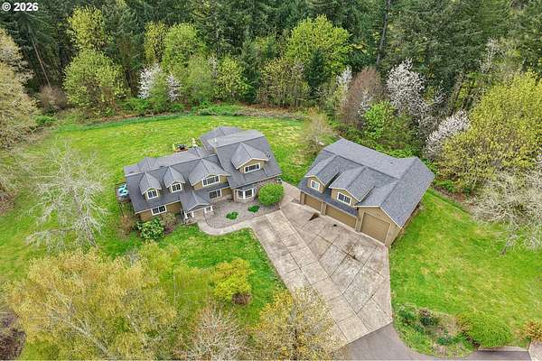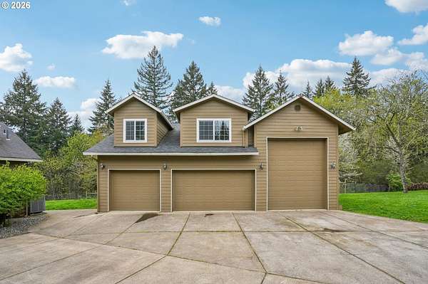 Is there a 4-bed single family home in La Center with acreage and an ADU for multigenerational living or rental potential? This gated 5.5 acre estate plus additional .65 acre tax lot includes a 4 bedroom main home and a 3 bedroom ADU with private entrance, expansive garage space, RV parking, and a well appointed kitchen built for everyday living and entertaining.4-bed single family home in La Center situated on over 6 acres across two tax lots, offering privacy, functionality, and long term versatility. The 2,672 sqft main residence features two primary suites, including one on the main level and an oversized upper level ensuite with generous closet space. The kitchen is designed for efficiency and style with double ovens, gas range, pot filler, island workspace, butlers pantry, granite counters, and durable tile flooring.The 1,320 sqft ADU spans two levels and includes 3 bedrooms plus loft and 1.5 baths with a private entrance, ideal for extended living arrangements or additional household space. Exterior highlights include gated entry, fenced, covered patio, two septic systems, water filtration system, water softener, and a 4 car detached garage with RV parking.This La Center property offers acreage living with room to grow, gather, and create long term value. Schedule your tour today.