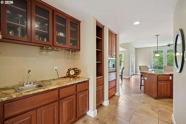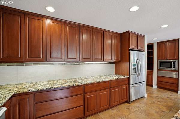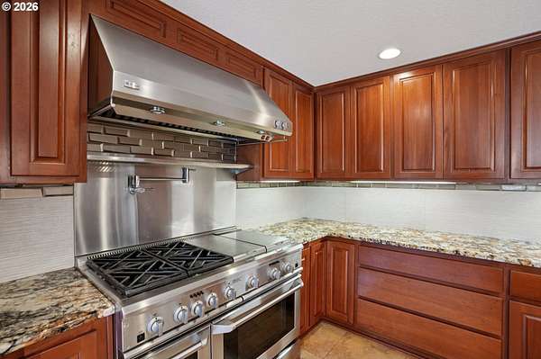 - Butlers Pantry, Convection Oven, Dishwasher, Disposal, Double Oven, Gas Appliances, Granite, Instant Hot Water, Island, Pantry, Plumbed For Ice Maker, Pot Filler, Range Hood, Stainless Steel Appliance, Tile, Trash Compactor