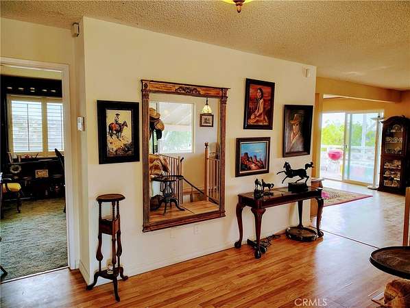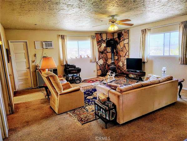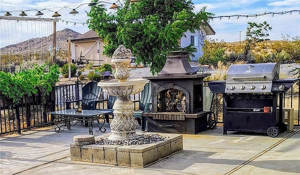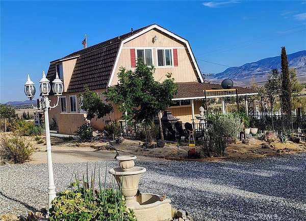 Two houses on 5 acres. A 4 bedroom, 2 bath & a 1 bedroom, 1 bath. There is a 3-car garage. A private well provides water to both houses and for irrigation. Solar panels provide power to the main house. Each house has its own propane tank. Some furniture is available. Look at these 2 homes, sitting on 5 acres. The main house is 2 story with 2,016 square feet, and a basement with an additional 1,008 square feet. It has 4 bedrooms, an office area, kitchen, dining area, large living room, 1 3/4 bathrooms, 2 covered deck areas, 1 open balcony, and a handicap ramp. The first level bathroom is a full bath with laundry facilities. The second level bathroom is 3/4 with shower only. The master bedroom is upstairs. It has a sliding glass door that leads to a balcony with mountain views. From the living room, you can exit through the sliding glass door onto a large, covered balcony, where you can spend time with family and friends. the basement can be used as an entertainment center, with a Hammond organ and a bar station included. This could be a man-cave, or a place to enjoy time with friends, watch football, listen to music, set up an exercise room, playroom, family room, etc. The roof is Alcoa Aluminum shingle, in excellent condition. The partially covered patio has a fireplace, a water fountain, and a BBQ area - perfect for relaxing, an area to serve a BBQ, and for large gatherings. The guest house is single-story, with 760 square feet. It has a bedroom, 3/4 bathroom, living room, breakfast nook and kitchen. Built in 2000, it has a wood burning stove and is wired for cable. The west half of the roof was replaced in 2024. The house is also equipped with an interior sprinkler system. Both houses are on septic systems, have separate propane tanks, have separate electric meters and both are fed by the deep well. The property has garden areas with vegetables and fruit trees. This property offers incredible potential for both personal and business uses. It can be horse or agricultural property. Of the 5 aces, 2 1/2 acres are fenced. You can raise horses or other animals and many more. There are endless possibilities in the uses of this land. Lucerne Valley's location, rural setting, and affordable living, and its proximity to outdoor attractions, make it ideal for nature lovers and those seeking a serene lifestyle. Attractions like Joshua National Park and Big Bear Lake, only 25 miles away, easily accessible.