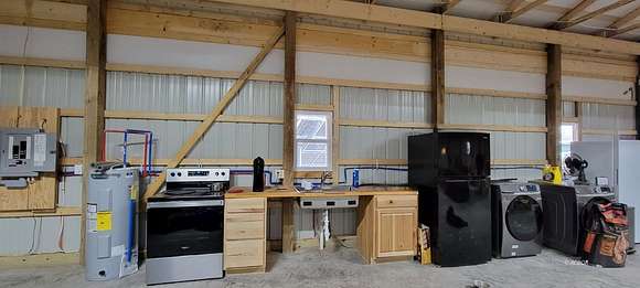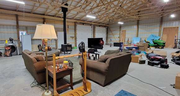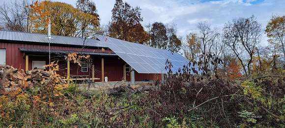 New Construction 2023. Insulation Done 11/10/23, not shown in photos. A "Sol-Ark" 15kW solar energy system with a 10yr Workmanship/Component Warranty powers this 74 acre off grid retreat. The solar inverter is capable of delivering 15,000W of power from the 30kWh lithium iron phosphate battery bank. Far from the city you've got everything you need to live the ideal private life. This quality built, Amish pole barn has 3,000sqft of space, including a 2 car garage with 10'x10' doors, ready to welcome in your entire hunting party or your custom floorplan design for daily family living. This oasis is move-in ready and bring your firearms because the new Liberty Fatboy Extreme safe is included as well as all the appliances! A private septic tank with leach field, a 2,500 gallon water tank, and Buck Stove check off the final boxes needed to live self-contained. Two creeks run through the property and the wildlife is abundant! Timber and mineral rights convey. Starlink available!
