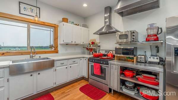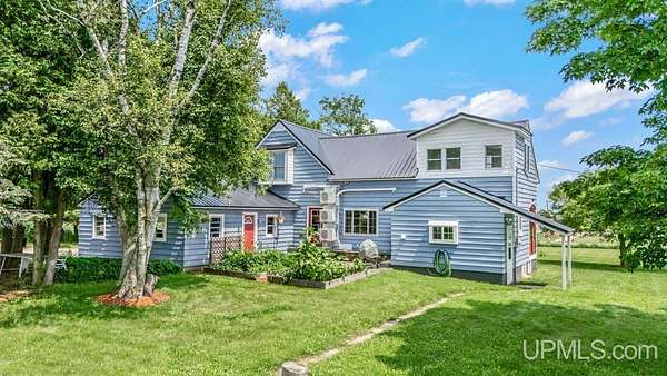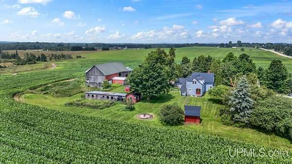 Nestled in a peaceful rural setting on 5 acres, this beautifully remodeled home offers the perfect blend of country living and modern comfort. Featuring four spacious bedrooms and three full bathrooms, there's ample room for the whole family with approximately 2,340sq' of living space. The main floor showcases new hardwood flooring throughout the kitchen, living room, main floor bedroom, and entryway. A generously sized en-suite bedroom on this level includes a private bathroom with high-quality cabinetry and fixtures. The well-appointed kitchen combines modern and rustic elements with stylish cabinetry, solid countertops, and stainless steel appliances. Anchoring the living room is a striking brick fireplace that adds warmth and character. Also on the main floor is a second full bathroom and a convenient laundry area. Upstairs, you'll find three additional large bedrooms, each with its own dedicated closet. One of the upper bedrooms spans over 27 feet and features a private bath along with multiple storage areas. Efficient forced air heating and cooling systems keep the home comfortable year-round. The property also includes an attached two-stall garage and multiple outbuildings, offering endless options for sheltered storage or hobby use. Enjoy the serenity of country life without sacrificing the comforts of modern amenities.