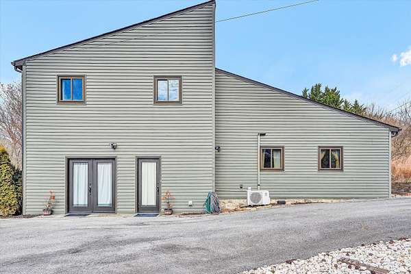 This unique contemporary home offers over 3,400 square feet of thoughtfully designed living space set on 5.5private acres. A circular driveway welcomes you to a beautifully updated exterior featuring new vinyl siding and a newer roof. The fenced yard,serene pond, screened-in porch, paver patio, and wood deck create an ideal setting for outdoor living and entertaining. Inside, the home shineswith a huge kitchen boasting vaulted ceilings, stainless steel appliances, an oversized island, and butcher block countertops. The massiveliving room features striking exposed wood beams, adding warmth and character. The entry level includes two bedrooms, a sunroom, office, fullbath, oversized laundry room, a nd a large storage area. The private primary suite occupies its own level and offers