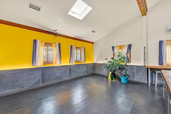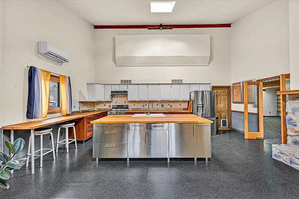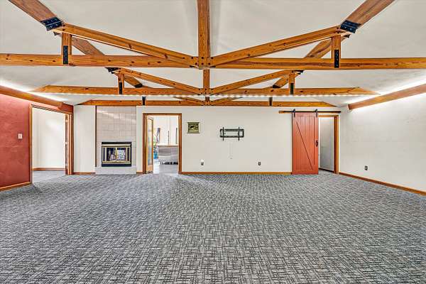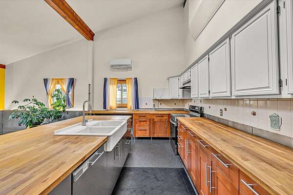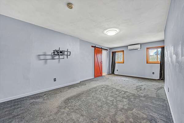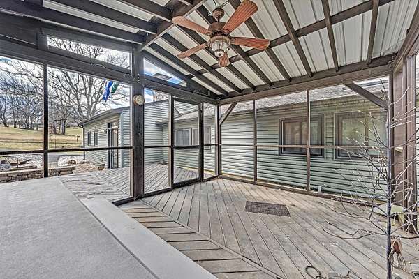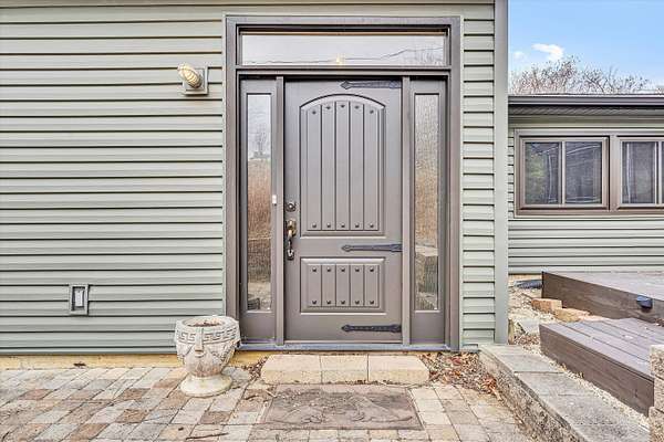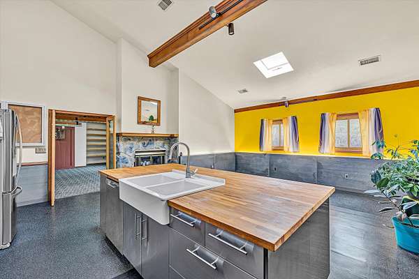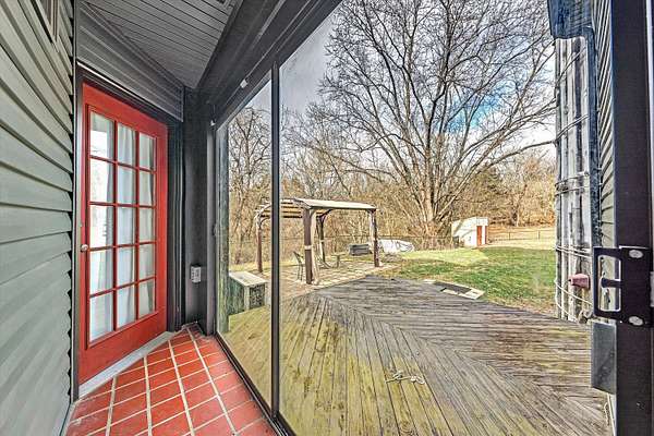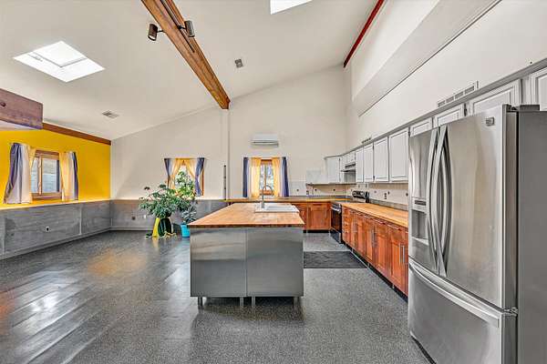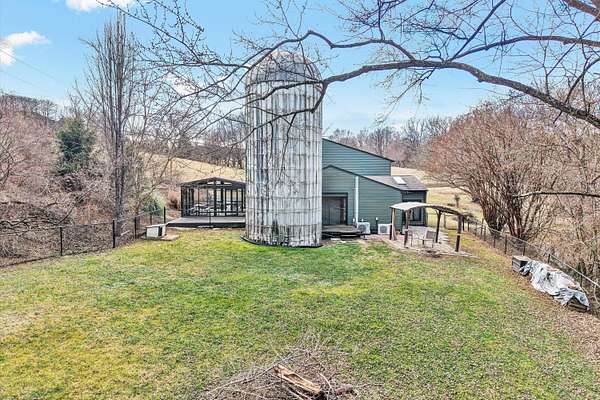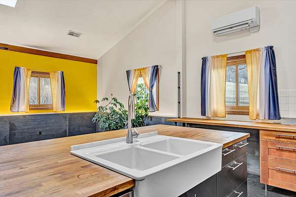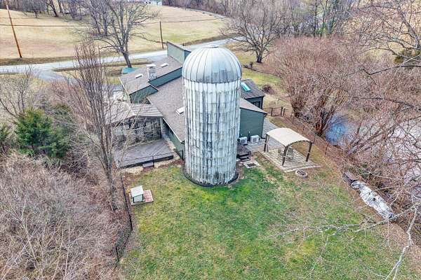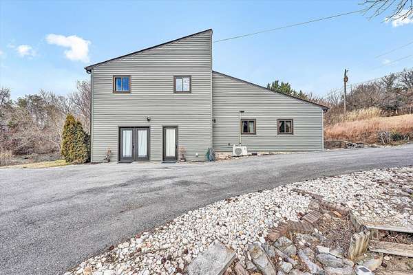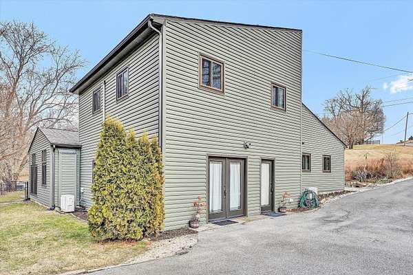 This unique contemporary home offers over 3,400 square feet of thoughtfully designed living space set on 5.5 private acres. A circular driveway welcomes you to a beautifully updated exterior featuring new vinyl siding and a newer roof. The fenced yard, serene pond, screened-in porch, paver patio, and wood deck create an ideal setting for outdoor living and entertaining. Inside, the home shines with a huge kitchen boasting vaulted ceilings, stainless steel appliances, an oversized island, and butcher block countertops. The massive living room features striking exposed wood beams, adding warmth and character. The entry level includes two bedrooms, a sunroom, office, full bath, oversized laundry room, a nd a large storage area. The private primary suite occupies its own level and offers an updated en-suite bath and two closets, including a walk-in. Numerous mini-split units throughout the home provide efficient, customizable comfort year-round.