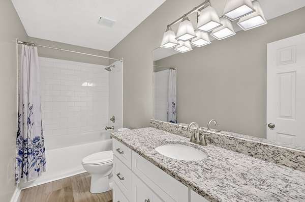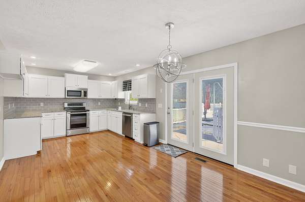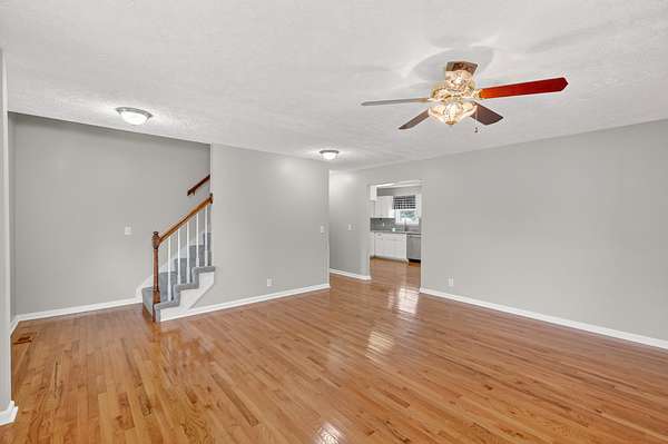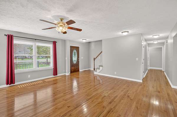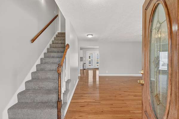 What a find! This is the best deal in the area with over an acre. It's move-in ready with nearly everything cosmetic updated including windows, roof, hvac, decking, pool, garage door, cabinets, and much more, but you get the idea. Beautiful pool area, and property adjoins wooded common area. The carpet is brand new. There are 3 bedrooms down and there are 4 rooms upstairs including another bedroom and bath. Great spot for many occupants to have their own room. So convenient to your county schools yet just outside the city limits. Just check out the comps of all listings in this area with at least an acre. I don't think you'll be disappointed! Shed does not convey.