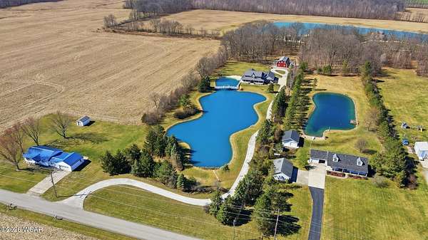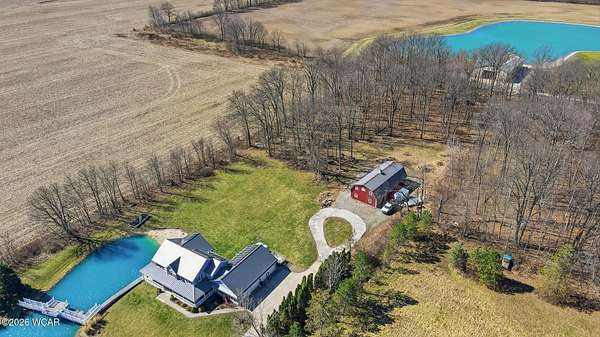 Discover this exceptional 3,044 sq. ft. two-story home set on a serene, private setting. Nestled 700 feet off the road, this peaceful retreat features 5 bedrooms and 4 full bathrooms, including a convenient first-floor bedroom with a handicapped-accessible bath. Both first and second floor laundry and a fully finished basement for even more living space. Built in 1992, the home has been thoughtfully updated for efficiency and low-maintenance living. Enjoy geothermal heating and cooling, a solar panel system installed in 2021 that provides up to nine months of free electricity, a metal roof added in 2021, and high-efficiency windows and doors replaced in 2022. These new additions come with a transferable warranty for added peace of mind. The home also includes an extra deep four car attached a garage. Outdoor living is equally impressive. Relax on the charming wraparound front porch overlooking a beautiful swimming area and a picturesque pond with an aeration system and a new pump added in 2025. The property includes approximately 2 acres of mature woods and 2 acres of pond--perfect for nature lovers seeking both open views and wooded tranquility. A spacious 30*50 pole barn features a heated shop, ideal for hobbies, storage, or equipment needs. Located in Bath Twp, Allen County near Lima, this unique property offers privacy, comfort, and natural beauty. Reach out to schedule your private showing!