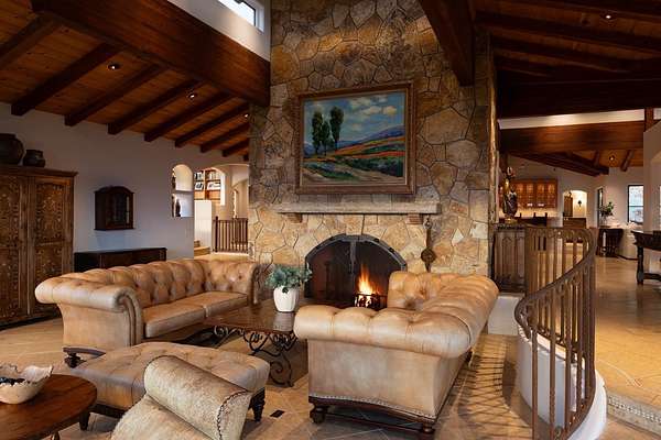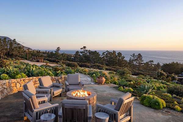 Set between the dramatic Carmel coastline and the Santa Lucia Mountains lies a private retreat in perfect balance with land and sea. Stone steps lead to this five-bedroom, six-bathroom contemporary coastal chalet, where a tiled foyer and vaulted, beamed ceilings create an immediate sense of grandeur. At its heart, a living room with a stone fireplace and soaring ceilings is bathed in light from expansive windows and skylights, offering stunning views from Yankee Point to Big Sur. The chef's kitchen features custom cabinetry, a spacious island, and a breakfast bar, flowing seamlessly into the dining room, bar, and outdoor BBQ space. The primary suite is a luxurious retreat with ocean views, a wood-burning fireplace, terrace access, and a spa-like bath with a walk-in closet. Four additional bedrooms offer comfort for family and guests. Outside, enjoy a pool, hot tub, pizza oven, grill, and firepit terrace surrounded by beautifully landscaped grounds. Additional highlights include a home theater, sauna, wine cellar, dual offices, and a private guest suite with its own entrance and full amenities. This rare estate in Victorine Ranch offers timeless beauty, privacy, and a legacy of luxury just minutes from downtown Carmel.