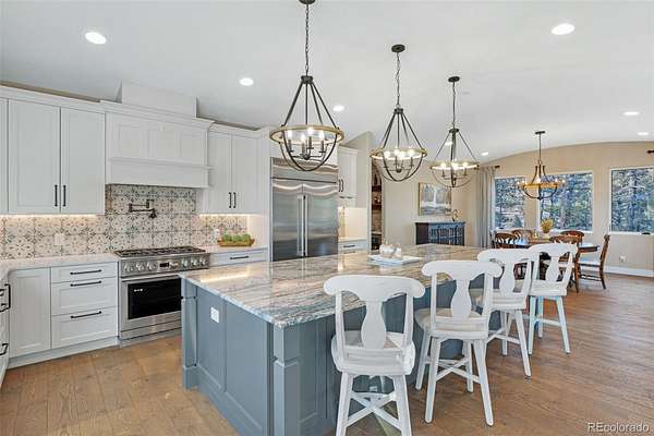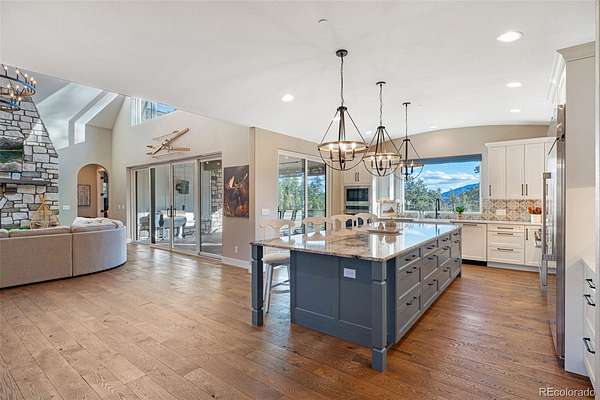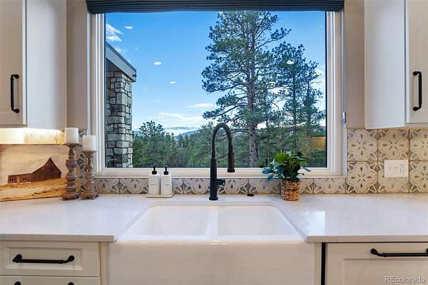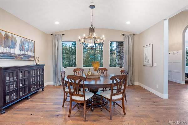 The home itself is a true showpiece, thoughtfully designed with high-end finishes throughout. Expansive windows frame breathtaking mountain views and fill the home with natural light. The covered deck with outdoor heaters extends living space year-round, perfect for quiet mornings overlooking Pikes Peak or evenings under the stars. The home’s low-maintenance construction allows you to spend more time enjoying mountain living and less time on upkeep.