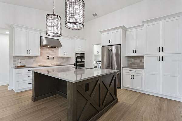 Come and live your own Magnolia Dream in this beautifully renovated farmhouse located on almost 5 Acres of cleared, HIGH and DRY property. This home is almost brand new! Let's start with the stunning curb appeal with the Crossed Fence and Gated front entrance into your estate, drive to your home on concrete driveway. All of the land is FULLY fenced offering peace of mind. Enter into this home and be WOWED with it's high ceilings and stunning views. The NEW kitchen is SO dreamy, with tons of storage, a impressive kitchen island with seating and lots of counter space. The kitchen cabinets are solid wood with soft close drawers. There is are impressive upgrades such as a pot filler above the smooth cooktop, handsome Kitchen Stainless Steel Hood and extraordinary pendant lights. All of the appliances are BRAND NEW and includes a Washer & Dryer. You will LOVE the living room, with a marvelous stone fireplace with custom built in's. The Master Suite is alluring with enough space in the bedroom for a sitting/lounging area. The Master Bath is AMAZING! Double vanities, built in linen closet, custom BATH TUB and walk in shower. The home also features a nice front porch for your rocking chairs and HUGE Screened in Back Porch with Shiplap ceiling overlooking your beautiful land. The Garage Floor has a striking epoxy floor, perfect for you! New ROOF, NEW A/C. New Blown in Insulation. Brand New Waterproof Laminate Flooring, New Exterior & Interior Paint, New Ceiling Fans & Custom Lighting, New Window Blinds and much more! This location is AMAZING, approx 14 minutes away from the Turnpike on HWY 27 for an easy commute to Orlando. It's just a minute away from North Hwy 33 so traveling to Leesburg, Groveland, Clermont or Sumter County is very quick!