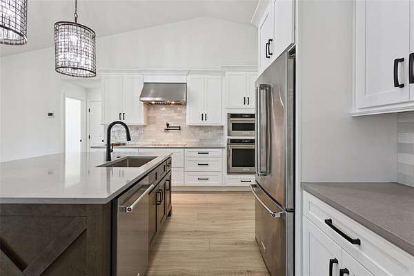 - Built-In Features, Ceiling Fans(s), Eat-In Kitchen, High Ceilings, Kitchen/Family Room Combo, Open Floorplan, Primary Bedroom Main Floor, Solid Surface Counters, Solid Wood Cabinets, Split Bedroom, Vaulted Ceiling(s), Walk-In Closet(s), Window Treatments