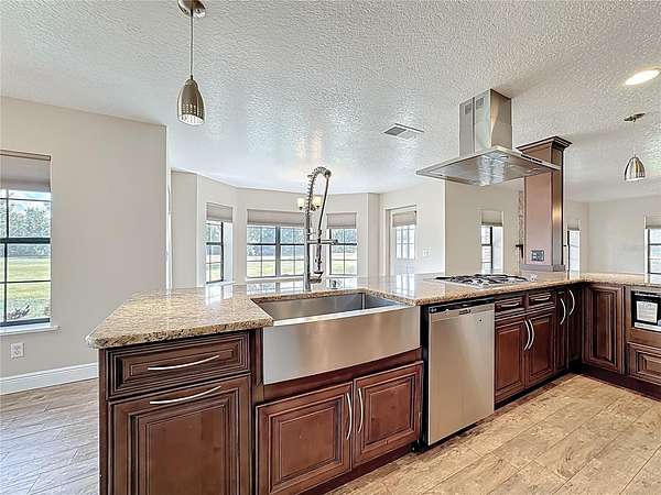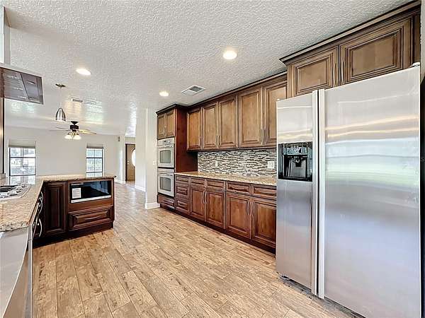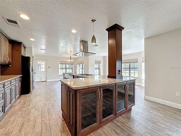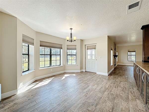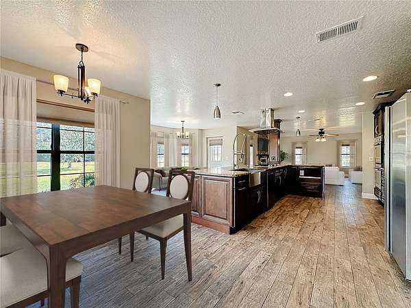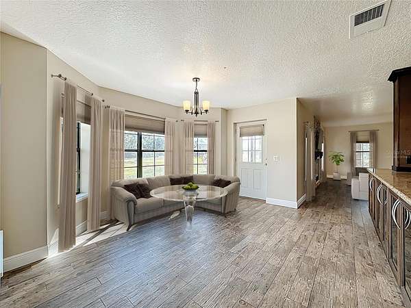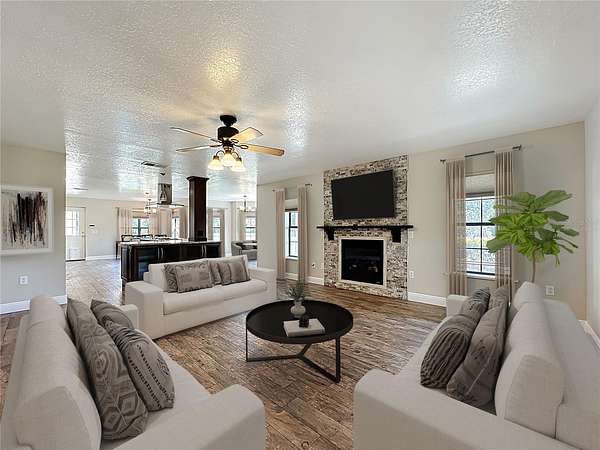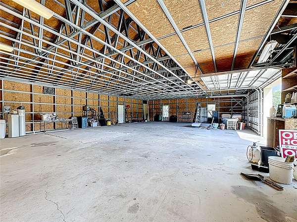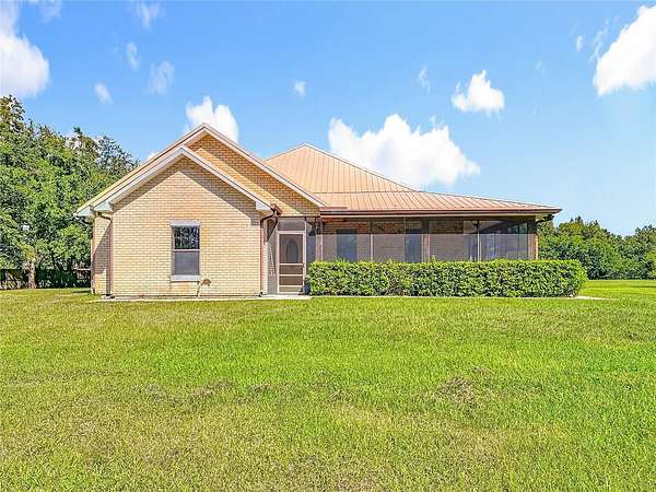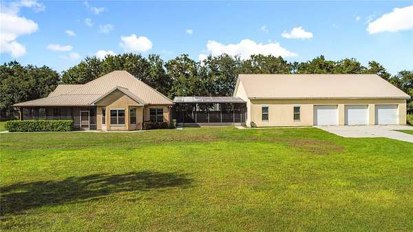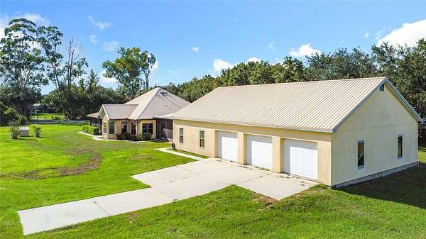 One or more photo(s) has been virtually staged. How could your lifestyle expand on wide-open land with room to create and the freedom to grow? Step through the enveloping 288-square-foot screened front porch, and go right into a grand, open-concept entertainment core that instantly feels like home. The oversized kitchen island is the heart of your hosting center--fitted with glass-front display cabinets, a 5-burner gas cooktop, a stainless farmhouse sink with pull-down sprayer and pot filler combo. It anchors a seamless flow through the rear dining area, side bay-shaped breakfast nook, and front living room with fireplace --with each wall in this space is home to a window offering uninterrupted views of your own private piece of Florida nature. All bedrooms are privately placed to the left of the foyer--set apart for rest. Your spacious Primary Ensuite tucked away from the front of the home, opens through French doors into a 1,080-square-foot screened breezeway--a true outdoor extension of the home, perfect for sunrise coffee, Sunday barbecues, or warm Florida nights with good friends, great food, and excellent conversation. The 36'x30' conjoining space adds just enough distance between the home and your 40' x 60' metal garage. Whether you need room for RVs, car collections, business gear, or to build out guest quarters, it's all here--designed for ease, ready for more. Located just 30 minutes from Lake Nona, Orlando Medical City, and the theme park corridor, this is where open land meets long-term value--ideal for personal use or flexible rental potential.