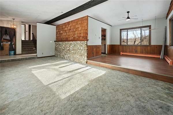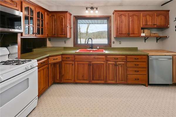 The home features a functional layout with multiple living spaces, including a lower-level family room, along with new windows, new appliances, a panel upgrade, new well pump, and wood furnaces in both the home and outbuilding. A 2-car attached garage adds everyday convenience.