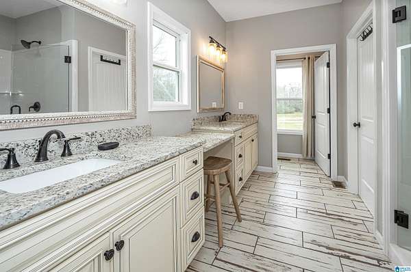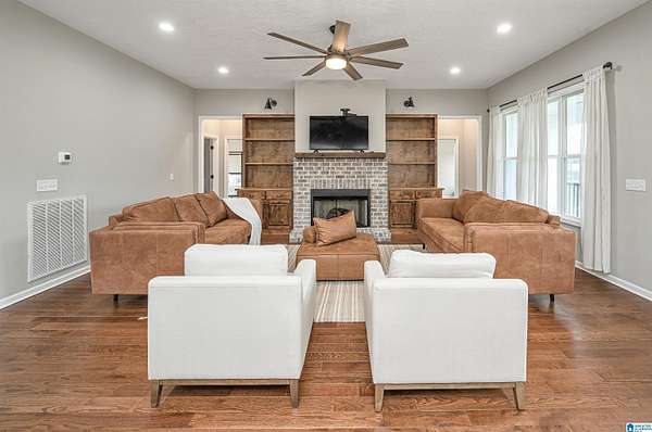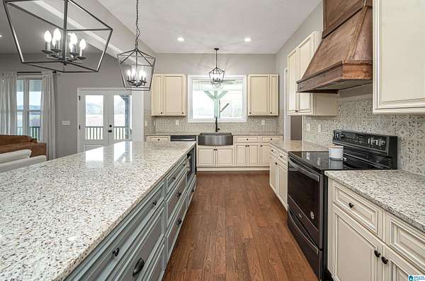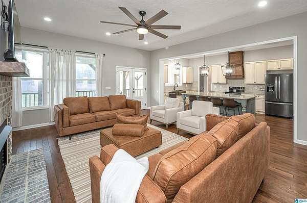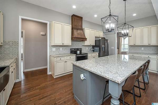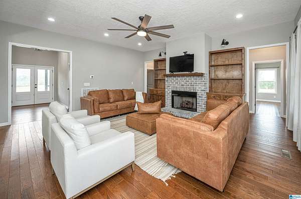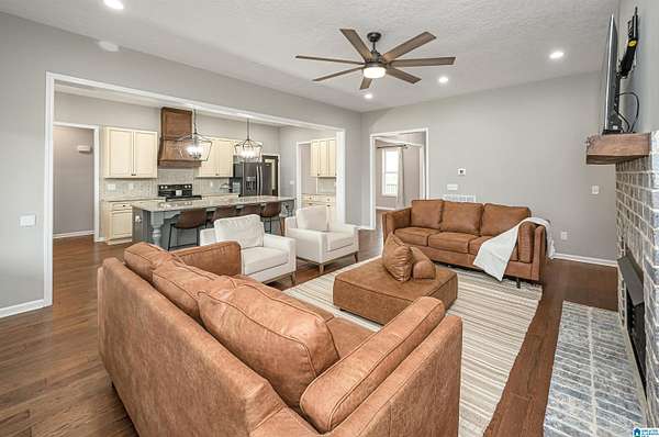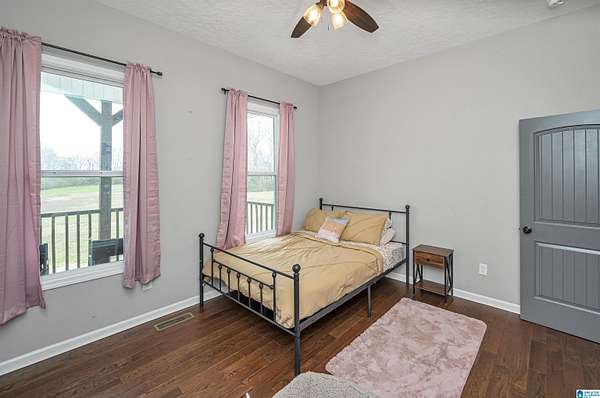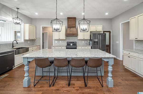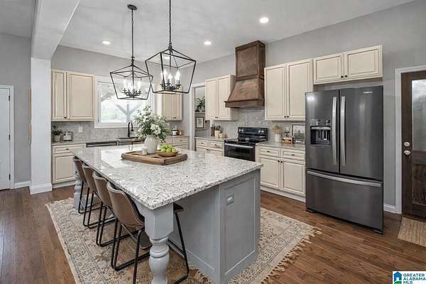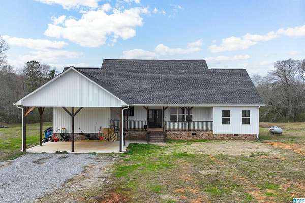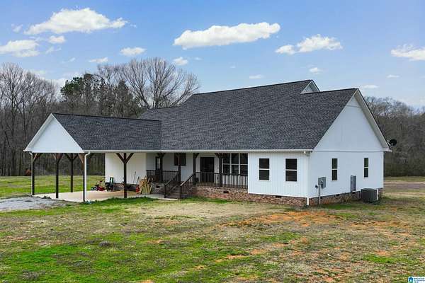 Enjoy peaceful country living on nearly 8 acres with convenient access to Highway 280. Custom-built in 2021, this 5BR/4BA home features hardwood floors, 9-ft ceilings, and a spacious open layout. The kitchen offers an oversized island, granite countertops, ceramic tile backsplash, black stainless appliances, a black stainless farmhouse sink, and a walk-in pantry with custom shelving. Living room includes a gas fireplace with custom built-ins, plus a separate dining room. Primary suite features a large walk-in closet and bath with marble shower and double vanity. Tile flooring in baths and laundry. Upstairs bedroom/bonus room with full bath and its own HVAC system. Two gas tankless water heaters. Attached carport. Newly installed porch railings and entry fencing. (landscaping and some interior rooms have AI generated enhanced photos)