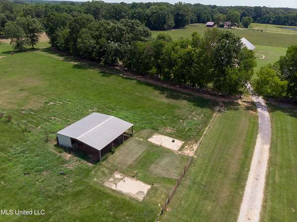 This custom-built equestrian property in Terry offers a luxurious and spacious living experience on 53.55+/- acres of rolling pastureland, making it a perfect oasis for horse enthusiasts. The property boasts numerous horse amenities, including two 36'x36' run-in barns equipped with stables, hay storage, water, and electricity. Additionally, there are six fenced pasture areas covering approximately twenty-five acres and four water pads to ensure the well-being of your horses. Aside from the equestrian facilities, the property features a generous 80'x120' workshop with double sliding doors, walk-through doors, and plumbing for water, providing ample space for various activities and projects. The house itself is a thoughtfully designed split-plan home, offering 3 bedrooms and 2.5 bathrooms. Inside, you'll find a dream kitchen with Corian countertops, stainless steel appliances, double ovens, a cooktop, and a pantry. The living room is cozy with a gas fireplace and plenty of storage. The master bedroom and bathroom are spacious and include double vanities, a corner tub, a walk-in shower, and a roomy walk-in closet. Additionally, there is a spacious bonus room and an office, perfect for various uses, such as crafting or studying. The office features a built-in desk and storage for added convenience. The laundry room is well-equipped with a sink, plenty of cabinets, and a large storage closet. Upstairs, the bonus room offers versatility and includes a partially floored walk-in attic for additional storage. Outdoor living is made delightful with three covered porches, providing a perfect place to relax and enjoy the serene surroundings. This property offers a peaceful and relaxing atmosphere, making it an ideal getaway with all the extras both inside and out. Don't miss the opportunity to call this equestrian paradise your home.