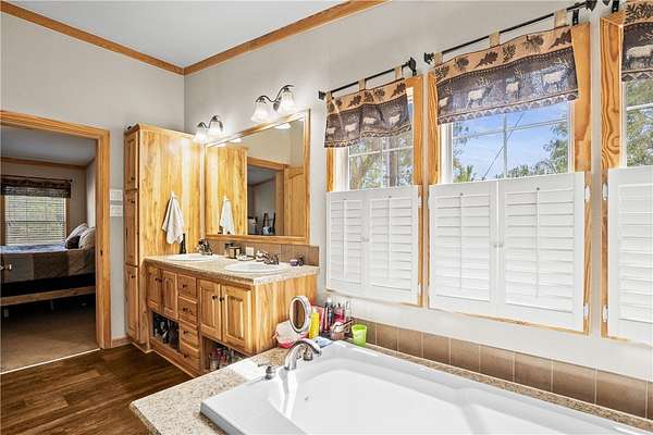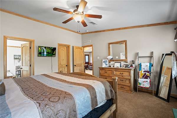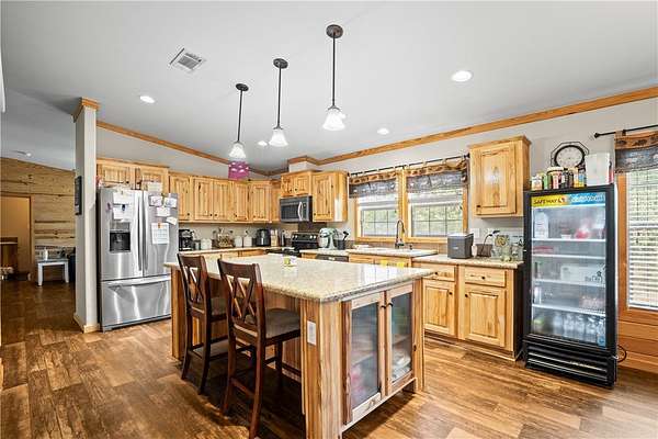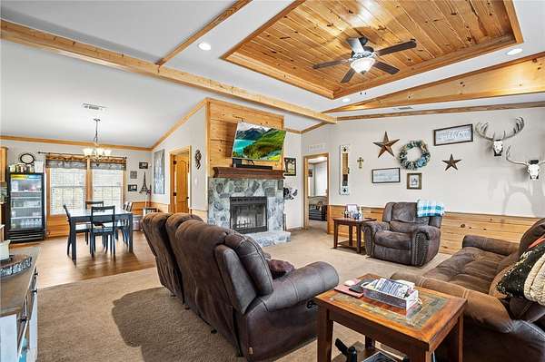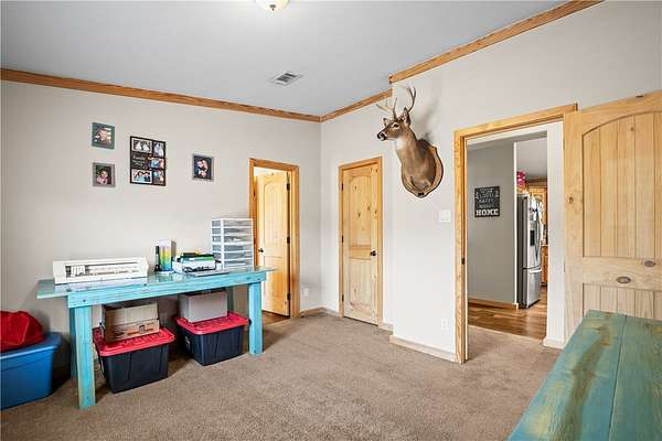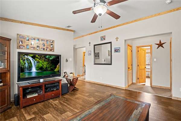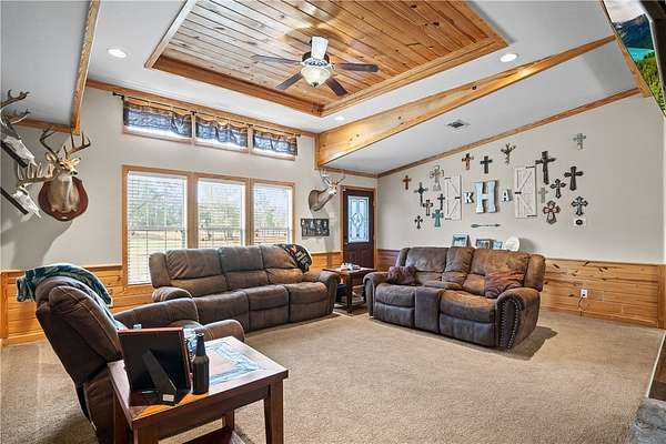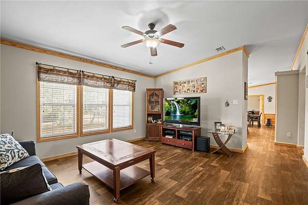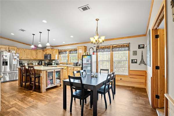 Spacious 4BR/2BA country home (2,280 sq. ft home) sits on 6.06 acres and is like a private haven. This acreage offers meandering trails perfect for walking, horseback riding, ATV driving or exploring. Abundant wildlife call this property home, too, creating a serene nature-lover's paradise. Scattered throughout the land are mature peach and mulberry trees along with muscadine vines that provide seasonal harvests and a touch of orchard charm. Customized home offers all appliances, and bonus interior storage. Two water wells on property. Outdoor living shines with a large deck, storage shed has electricity, lights and 2 storage levels. Backyard has chicken coop, and fenced garden, all with snake-proof fencing. All furniture conveys-move-in ready for peaceful country living.
