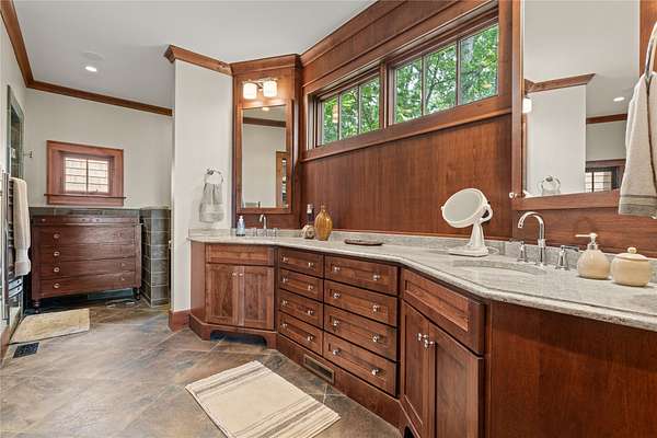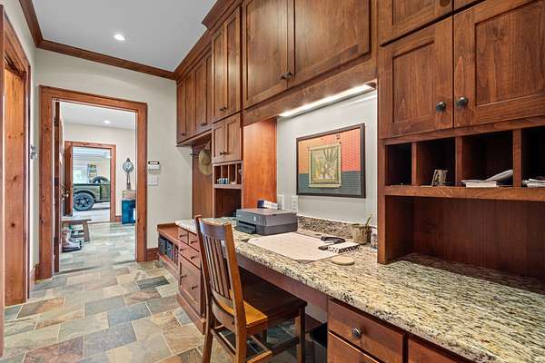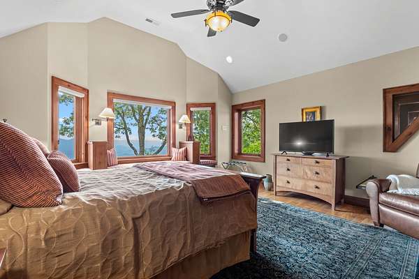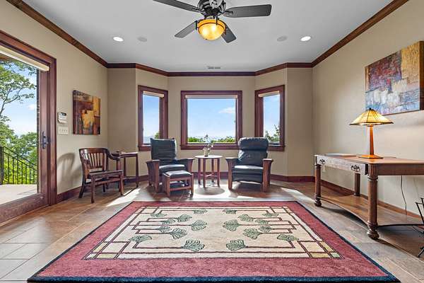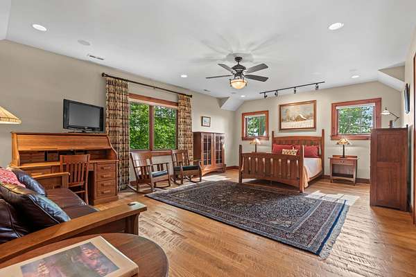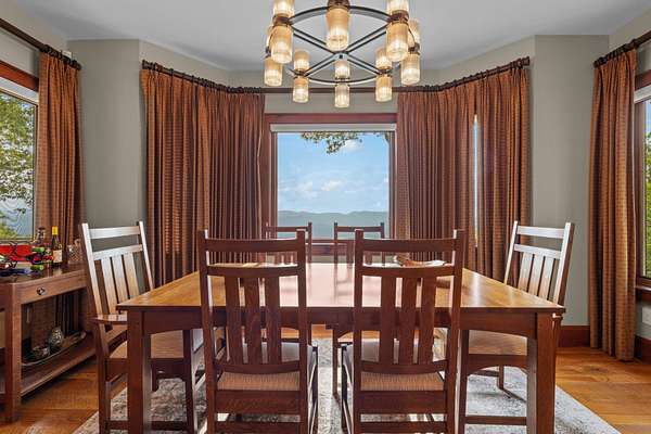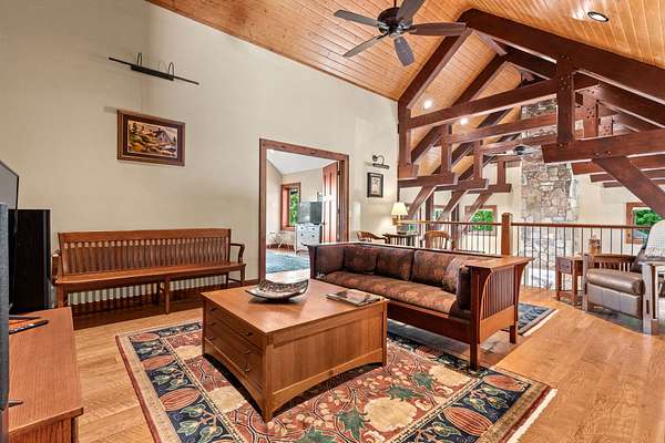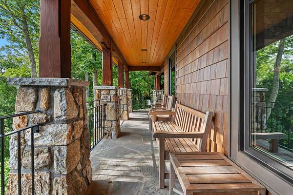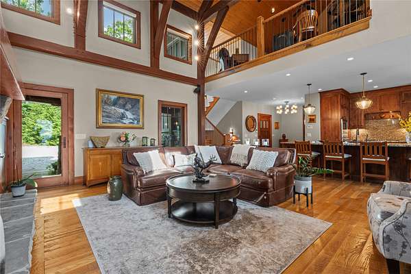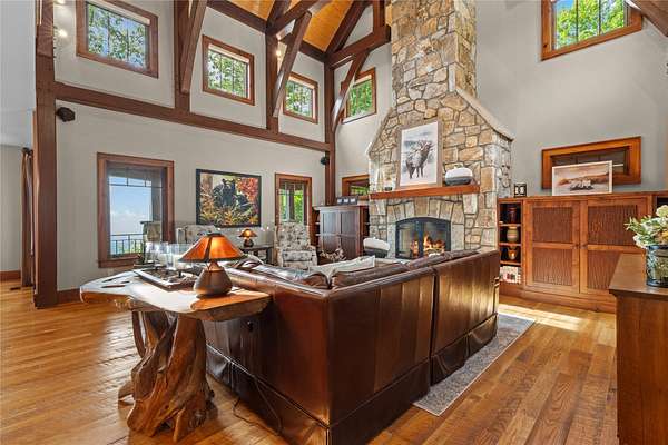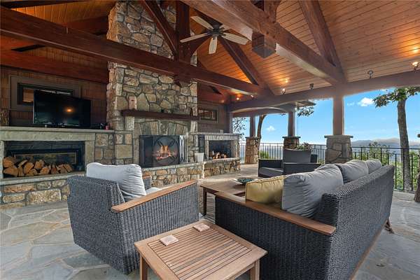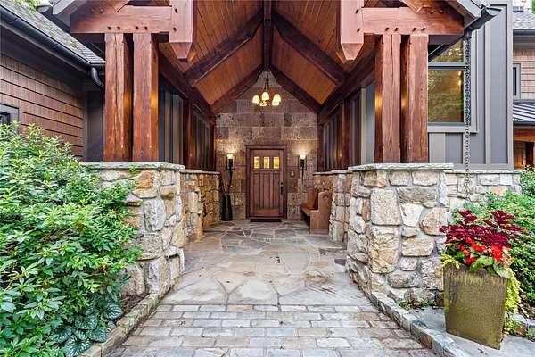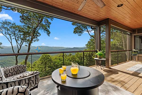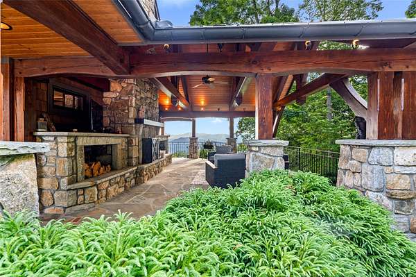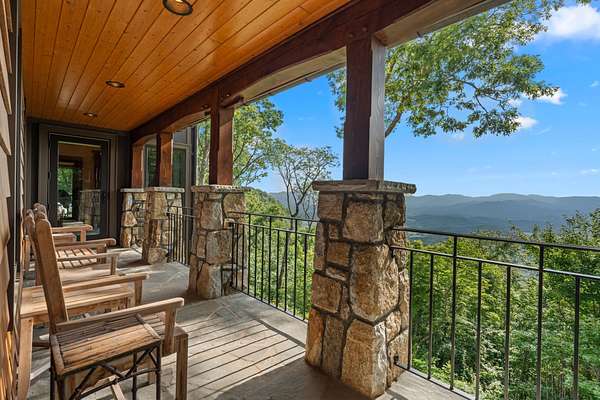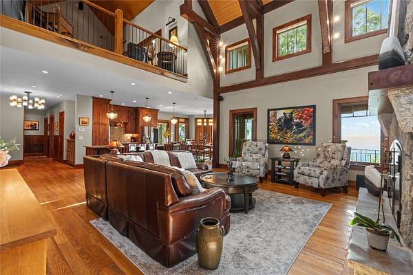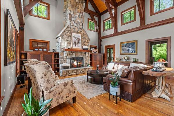Set on nearly 10 private acres at over 3,500 feet in elevation, 315 Bears Paw Trail is a singular expression of architectural elegance and environmental integrity. One of the only residences in Macon County to achieve LEED Silver certification, this exceptional property embodies a rare balance of sustainability, craftsmanship, and seclusion. Located within an exclusive mountaintop gated community, it offers a refined high-elevation lifestyle free from the congestion and commercial footprint of nearby resort towns-an enclave prized for its sweeping panoramic vistas, unspoiled natural surroundings, and peaceful sense of retreat. Inside, the home reveals a study in quiet luxury. Five spacious bedrooms, five full baths, and a half bath are thoughtfully designed within a stunning timber frame structure crafted from locally sourced southern yellow pine. Wide-plank Appalachian oak flooring, native stone fireplaces, and curated architectural details create a warm yet sophisticated atmosphere throughout. Every space reflects intentional design, from multiple library areas to a professional-grade home theater and a private guest apartment ideal for extended stays. A breezeway connects the main residence to a generous three-car garage, intentionally detached to preserve air quality within the home. For those with a passion for gardening, a separate potting shed offers dedicated space for cultivation and creativity. Engineered with both sustainability and efficiency in mind, the home is oriented along a near true north-south axis to maximize passive solar gain. A solar array and a vertical wind turbine are integrated into the grid, allowing the property to harness renewable energy and return excess power for credit. Additionally, rainwater from half the roof is collected into a 1,000-gallon reservoir, supporting landscaping needs during drier seasons. Timeless in design, private in setting, and deeply connected to its natural surroundings, this is mountain living at its most refined.