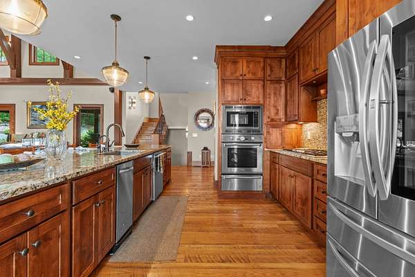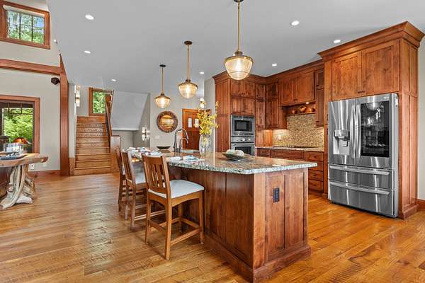 - Bookcases, Breakfast Bar, Ceiling Fans, Central Vacuum, Double Vanity, Eat In Kitchen, Granite Counters, High Ceilings, High Speed Internet, In Law Floorplan, Instant Hot Water, Kitchen Island, Sound System, Vaulted Ceilings, Wet Bar, Wired For Sound