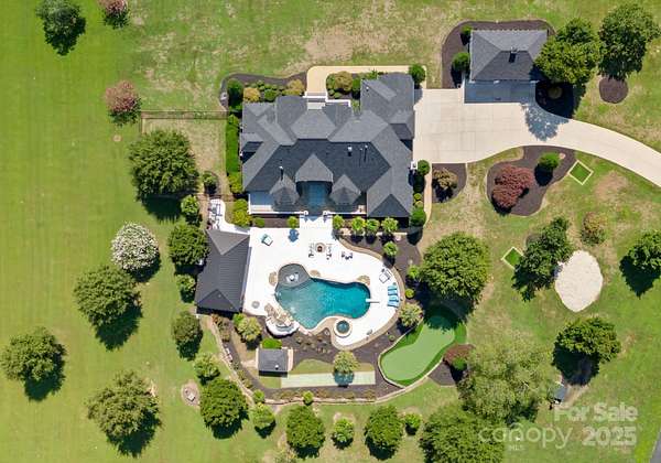 A rare opportunity to own one of the region's premier luxury equestrian estates, set on 43+/- private acres just minutes from Charlotte. Behind a coded gated entrance, a winding drive opens to a completely remodeled over 6,000 sq. ft. residence, multiple barns, and resort-style amenities-crafted for both refined living and equestrian pursuits. The main home was extensively updated in 2023 with thoughtful attention to every detail. Exterior improvements include a new roof, fresh stucco finish, a new concrete driveway, repaired and painted roofs on all outbuildings, and fully updated fencing with added aluminum sections. Inside, the home has been transformed with new hardwood floors, custom molding, designer lighting, new countertops, modern appliances, spa-like bathrooms with re-tiled showers, a steam unit in the primary suite, and an expanded walk-in closet. A custom dog shower brings convenience, while mechanical upgrades such as all-new AC units with ductwork, foam insulation, a water-softening system, endless water heater, and a fully encapsulated crawl space with humidifier provide lasting comfort. Outdoor living was also reimagined with a re-plastered pool and new automated equipment, a built-in grill, enhanced drainage and landscaping, and the addition of new exterior lighting and a comprehensive camera system. Elegant living spaces feature a home theater, chef's kitchen, and generous walk-in closets-designed for both comfort and practicality. The grounds elevate everyday living with an in-ground pool and spa featuring waterfall and slide, a covered outdoor pavilion with bar and grill, and a private putting green. A stocked 5-acre pond offers a serene setting for fishing or quiet reflection. Equestrian facilities are turnkey with an 8-stall barn including lounge, bathroom, grooming/wash bays, and a 20-ft breezeway, plus fully fenced pastures and scenic riding trails. An attached 3-car garage with built-in bar, detached 3-car garage. Every aspect of this estate has been carefully modernized to provide privacy, security, and effortless luxury. For those seeking additional acreage, an adjacent 71-acre parcel with hay barn is also available. Minutes from Charlotte yet a world away, 315 Brief Road offers the ultimate combination of equestrian lifestyle, modern amenities, and timeless appeal-more than a home, it is a legacy estate.