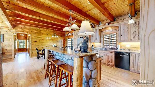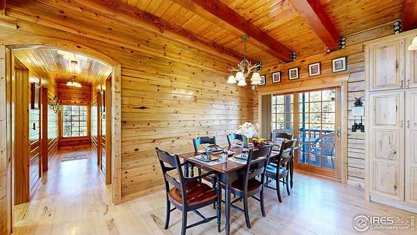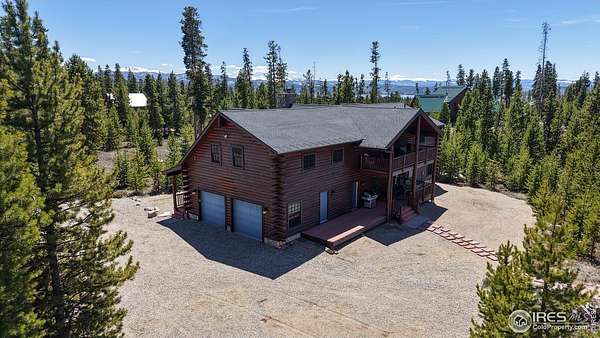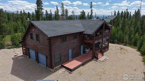 Nestled on 2.8 pristine treed acres, this impeccably maintained 6-bedroom, 4-bath custom log home offers an unrivaled Colorado mountain living experience. With over 4,600-square-feet of finished living space, experience modern convenience with the rustic charm of logs, exposed beams and hickory hardwood floors. The spacious great room features soaring vaulted ceilings and a beautiful wood burning fireplace with floor to ceiling river rock. In the gourmet kitchen you'll find custom hickory cabinets, granite countertops, double ovens and a gas cooktop. A separate dining room, two main floor bedrooms, a full bath, laundry room and a mudroom complete the main floor living area. Upstairs, retreat to the primary suite featuring three closets, a private 5-piece bath, and an additional sitting area. The spacious loft offers direct access to the rear deck. The upper level also includes a 27' X 27' bonus room with a gathering area, full bath and 2 built-in beds, plus dedicated space for an additional double bed. The perfect private area for guests or family activities. Basement (finished in 2020) provides two additional bedrooms, 3/4-bath, game room/bonus space for entertaining, and an additional storage area. Owned security system and propane tank included. Oversized, 2 car attached garage and plenty of additional parking. Bring your toys! Enjoy peaceful mornings or evenings of entertaining on one of the four private decks surrounding around the home. Located just minutes from Grand Lake's charming village and the western entrance to Rocky Mountain National Park, restaurants, three lakes and world-class hiking, fishing, and snowmobiling.