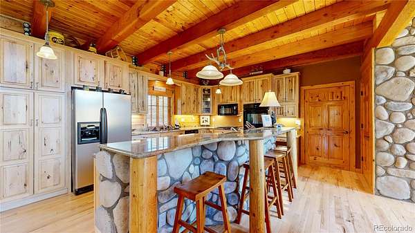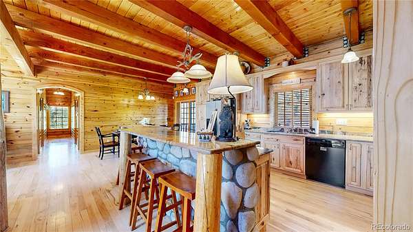 Nestled on 2.8 pristine treed acres, this impeccably maintained 6-bedroom, 4-bath custom log home offers an unrivaled Colorado mountain living experience. With over 4,600-square-feet of finished living space, experience modern convenience with the rustic charm of logs, exposed beams and hickory hardwood floors. The spacious great room features soaring vaulted ceilings and a beautiful wood burning fireplace with floor to ceiling river rock. In the gourmet kitchen you'll find custom hickory cabinets, granite countertops, double ovens and a gas cooktop. A separate dining room, two main floor bedrooms, a full bath, laundry room and a mudroom complete the main floor living area. Upstairs, retreat to the primary suite featuring three closets, a private 5-piece bath, and an additional sitting area. The spacious loft offers direct access to the rear deck. The upper level also includes a 27' X 27' bonus room with a gathering area, full bath and 2 built-in beds, plus dedicated space for an additional double bed. The perfect private area for guests or family activities. Basement (finished in 2020) provides two additional bedrooms, 3/4-bath, game room/bonus space for entertaining, and an additional storage area. Owned security system and propane tank included. Oversized, 2 car attached garage and plenty of additional parking. Bring your toys! Enjoy peaceful mornings or evenings of entertaining on one of the four private decks surrounding around the home. Located just minutes from Grand Lake's charming village and the western entrance to Rocky Mountain National Park, restaurants, three lakes and world-class hiking, fishing, and snowmobiling.