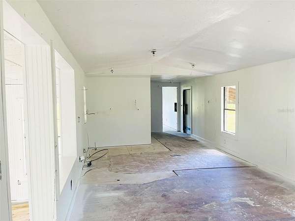 Sitting back off a paved dead-end road, the house has been gutted and partially renovated with some rooms featuring new subfloor and drywall. There is plenty of work yet to be done (as seen in the photos). Outside you will find 2.22 dry acres divided into a large yard, and two flat, cleared, fenced pastures (fence needs repair in areas). One pasture features a metal livestock barn / shed that needs some work. Mature oaks scattered around give the property a feeling of a peaceful and picturesque lush green homestead. This neighborhood features ranches and farms. It feels like a world away, but all the modern conveniences of town are just a short drive away. Come finish the work that has been started, and you will be proud to call this one home.