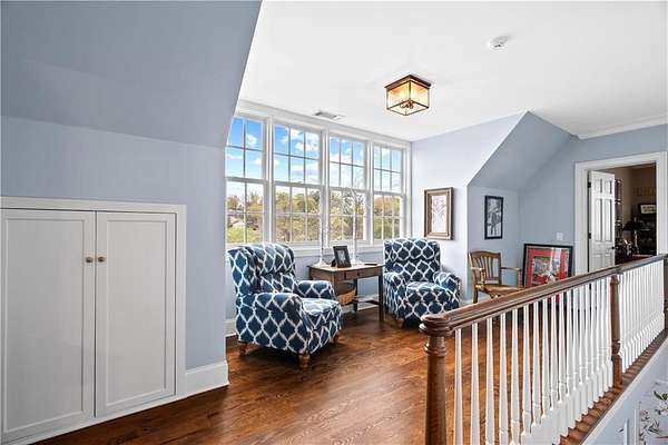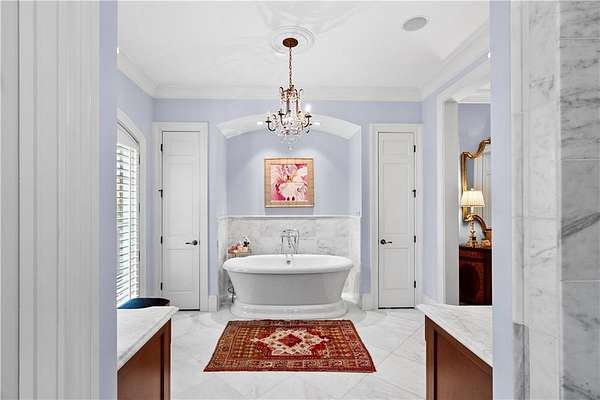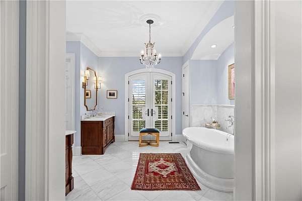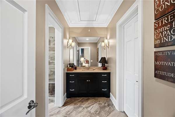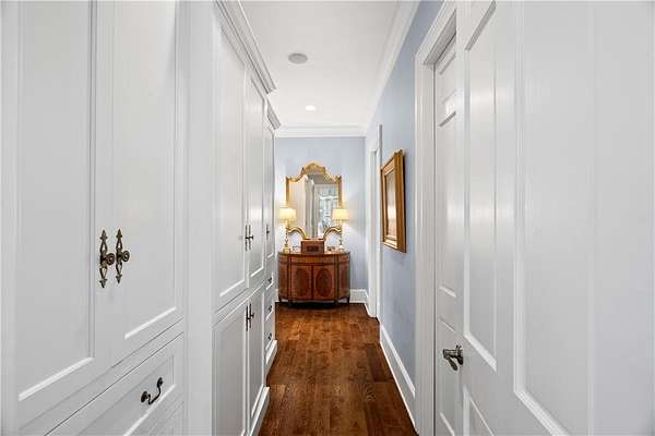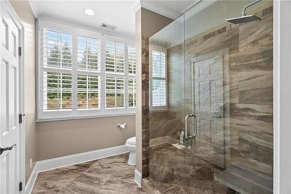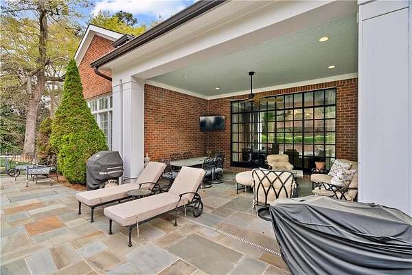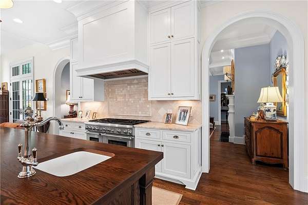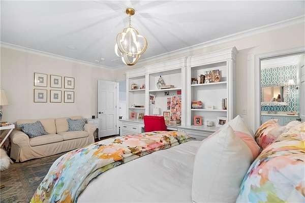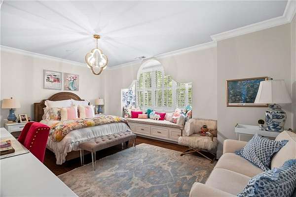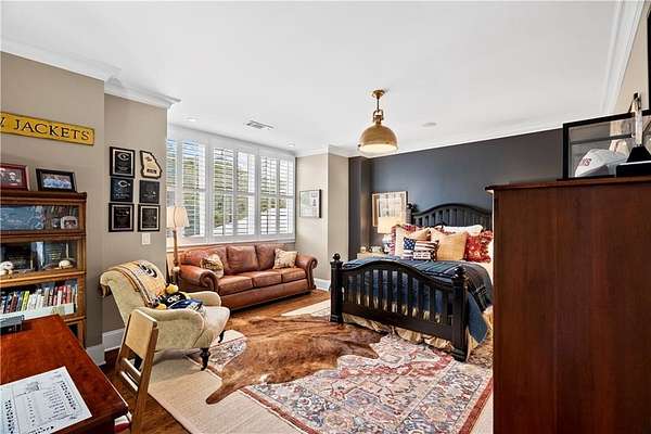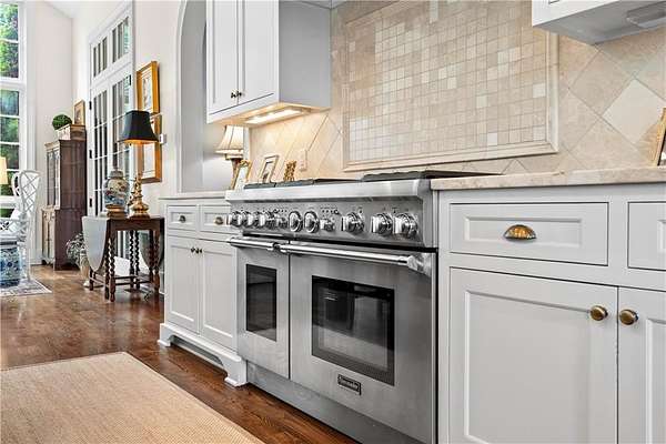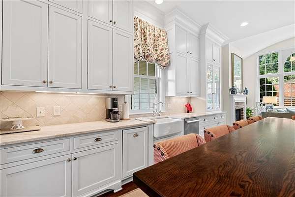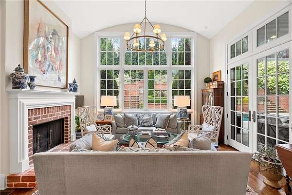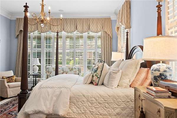 Perched above the Heart of Downtown Calhoun and set on approximately two private acres, this exceptional and extraordinary four-sided brick residence offers a rare combination of privacy, elevation, and scenic views of the town and distant mountains. Approached by a gently curving driveway, the home sits prominently overlooking mature landscaping, lush hydrangeas, and one of the most beautiful lawns in the area. Despite its central location, the setting feels remarkably quiet and secluded. Thoughtfully designed with meticulous attention to detail, the home showcases high-end finishes throughout. From the exotic wood on the side porch to limestone steps and bluestone on the front porch, quality craftsmanship is evident at every turn. Wood columns, shutters, and doors complement the timeless architecture, while triple-hung floor-to-ceiling windows along the front of the home fill the interiors with natural light. The ceilings on the main level range from approximately 11 to 14 feet and are enhanced by extensive molding and trim work. Flooring consists of rich hardwoods and natural stone, reinforcing the home's classic, upscale aesthetic. The foyer features an antique newel post, and designer lighting throughout. The main level offers beautifully proportioned living spaces including a welcoming family room, keeping room, and well-appointed kitchen designed for both everyday living and entertaining. The primary suite and an additional bedroom or office are conveniently located on the main level. Upstairs, two spacious bedrooms are connected by a bright sitting area with expansive windows and beautiful natural light. Each bedroom in the home features an en-suite bath, along with large closets complete with custom wooden organization systems and drawers. The finished terrace level provides exceptional flexibility with a full kitchen, living area, game space, craft room, full bath, and an additional room that can serve as a fifth bedroom. Built into the side of a rock hillside, this level offers added safety and can function as a storm shelter. The home also provides abundant storage throughout. Outdoor living is equally impressive with a low-maintenance heated gunite pool, irrigation system, and mature landscaping designed for both beauty and ease of care. The terrace and covered porch create multiple areas for relaxing or entertaining while enjoying the peaceful surroundings. Additional highlights include a three-car garage, extensive storage, en-suite bedrooms throughout, and a thoughtfully designed layout combining elegance with functionality. With its elevated setting, exceptional finishes, and private yet convenient location, this remarkable property offers a rare opportunity in the heart of Calhoun.