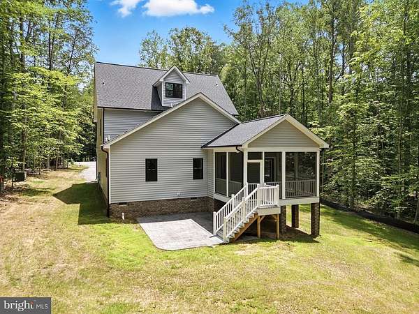 FULLY COMPLETE!!!!New Construction by Custom Craft Homes - This brand-new, 3,100 sq. ft. home is set on a 2-acre lot in the desirable Freshwater Estates community. With a deeded boat slip and convenient proximity to Lake Anna's public side, this property is within walking distance of Lake Anna. The home features a brick foundation, cedar columns, and a 22x20 garage with a paved driveway. A conditioned crawl space, landscaping, sidewalk, 15x15 rear concrete patio, and a 16x12 screened-in porch enhance the outdoor area. The first floor includes a spacious family room with vaulted ceilings, exposed beams, and a fireplace, leading out to the screened porch. The chic kitchen and dining area feature granite countertops, a tile backsplash, a large island, and stainless steel appliances. Also on this floor are a laundry room, office, and the primary suite, which includes a tile shower with glass doors, double vanities, and a tile floor. Upstairs, you'll find three additional bedrooms, including a second primary suite with a private bath, plus another full bathroom and ample storage. The third floor offers a versatile recreation room, perfect for entertaining or relaxation. This new-build in the new Firefly Fios area of operations.