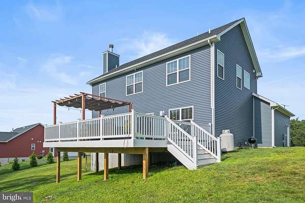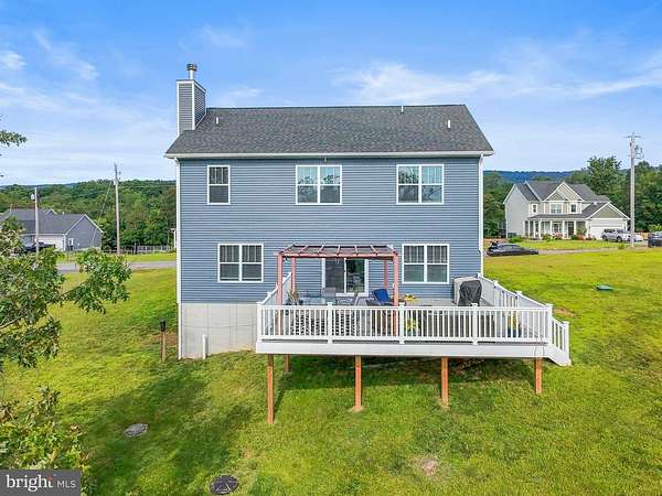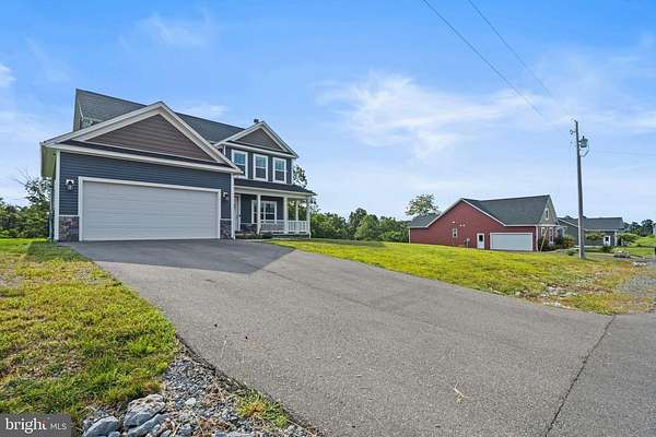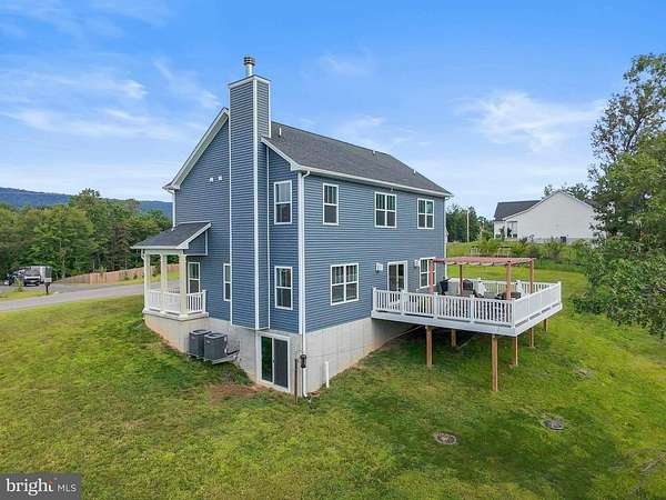 Welcome Home to this Beautiful Colonial. This is a stunning, custom-designed 4 Bedroom, 2.5 Bath Craftsman home masterpiece is perfectly situated on 2 private, wooded acres in a low-restriction community, offering the perfect blend of architectural character and modern luxury. The exterior features deep blue siding, shake accents in the gables, a real stone water table, and an inviting wrap-around front porch. Inside, the unique and open layout showcases luxury long-board vinyl plank flooring throughout the main level and upper hallway, with elegant oak-stained stairs. The custom grey Craftsman kitchen is an entertainer's dream, highlighted by a massive 10' x 4' island topped with sparkling white quartz and a sink, stainless steel Whirlpool appliances, and a spacious walk-in pantry, back splash, while the dramatic formal dining room boasts a suspended tray ceiling. The family room offers a cozy wood-burning fireplace, and a main level study provides an ideal work-from-home space. Large windows throughout the home frame breathtaking views of the surrounding mountains and mature trees, leading outside to a massive 20' x 25' Trex deck. The upper level features a convenient separate laundry room and generously sized bedrooms, culminating in a luxurious owner's suite with a custom-tiled shower, tiled pan, coordinating tile flooring (the secondary bath is also stylishly tiled) and tankless hot water. Additional upgrades include a two-tone Agreeable Grey and white trim paint scheme, custom recessed lighting, ceiling fans, and a large unfinished walk-out basement with 3-piece rough-in plumbing, making this home a truly unparalleled wooded sanctuary. There is an invisible dog fence with two collars, a Stihl Brush Cutter, two Ecobee thermostats, an Ecobee doorbell ring camera, an outdoor Pergola, outdoor deck blue tooth speakers, and outdoor deck smart outlets that are integrated with Google Home or Alexa that will all convey. Welcome home to this beautiful custom-built 4-bedroom, 2.5-bath Craftsman-style Colonial tucked away on 2 peaceful, wooded acres in a low-restriction community. From the inviting wrap-around front porch and deep blue siding with shake accents and real stone details to the bright, open interior, this home blends charm and comfort perfectly. Inside you'll find luxury vinyl plank flooring throughout the main level and upper hallway, oak-stained stairs, a cozy family room with a wood-burning fireplace, and a main-level study ideal for working from home. The custom gray Craftsman kitchen is the heart of the home, featuring a huge 10' x 4' quartz island, stainless steel Whirlpool appliances, stylish backsplash, and a walk-in pantry, while the formal dining room stands out with a suspended tray ceiling. Large windows showcase beautiful mountain and wooded views and open to a massive 20' x 25' Trex deck, perfect for relaxing or entertaining. Upstairs offers a convenient laundry room, spacious bedrooms, and a private owner's suite with a custom-tiled shower and matching tile floors, plus a nicely tiled secondary bath. Additional highlights include two-tone Agreeable Gray and white trim paint, recessed lighting, ceiling fans, a tankless hot water heater, and a large unfinished walk-out basement with rough-in plumbing for future expansion. Extras that convey include an invisible dog fence with two collars, Stihl brush cutter, two Ecobee thermostats, Ecobee doorbell camera, outdoor pergola, Bluetooth deck speakers, and smart outdoor outlets-all integrated with Google Home or Alexa. This home is truly an unapparelled wooded sanctuary with mountain views! It's a must see!