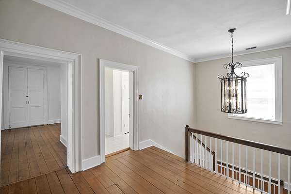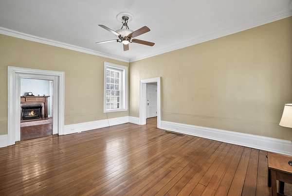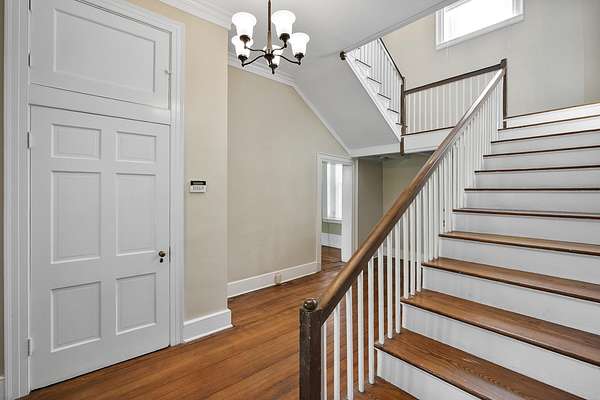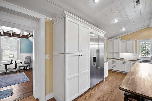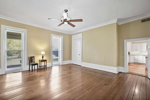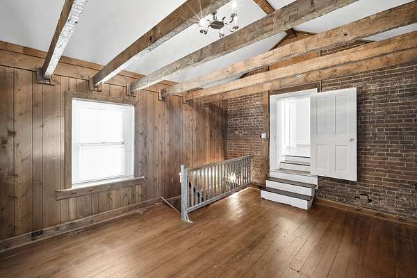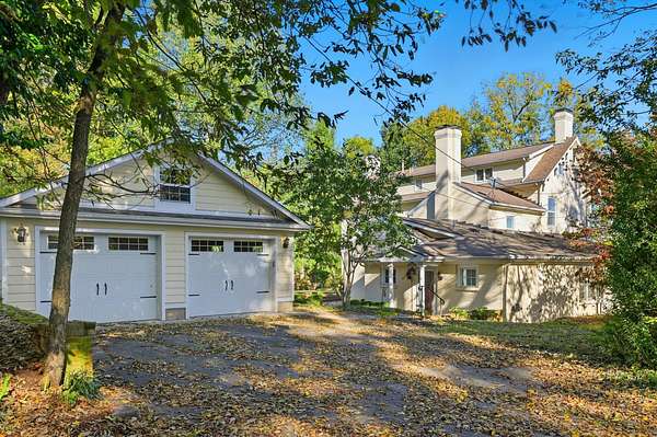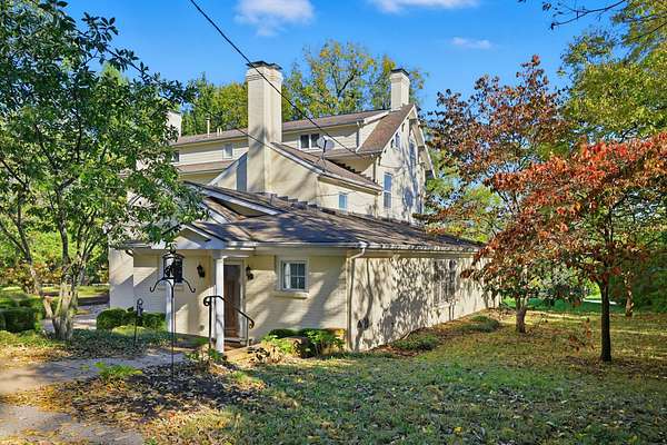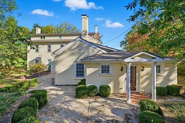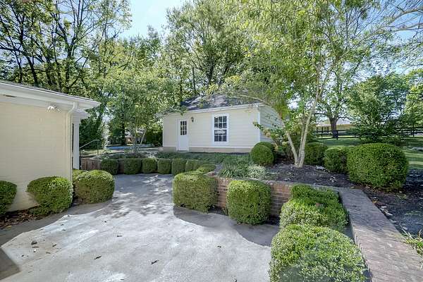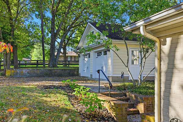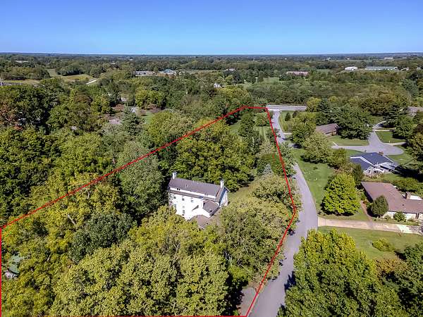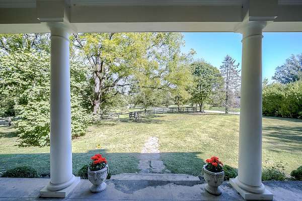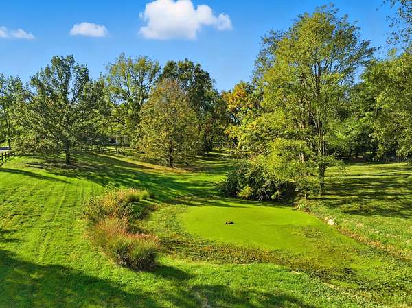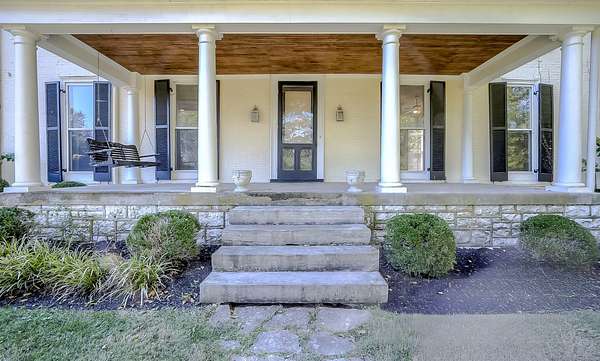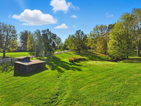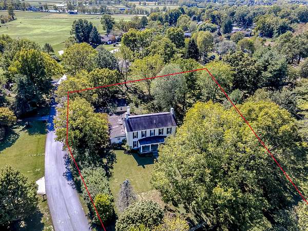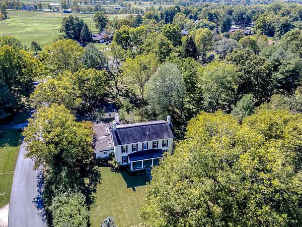 Timeless character on 4.5 picturesque acres in Woodford County. This remarkable residence, with origins tracing back to 1790, has been meticulously reimagined over the past two decades, including a Tom Padgett renovation. At the heart of the home, a stunning chef's kitchen invites gathering and celebration, showcasing an oversized island, Thermador Professional appliances, and abundant cabinetry. The main level offers a luxurious primary suite, a spacious living and dining area ideal for entertaining, a generous laundry room, and the home's original room-now a charming office with original beamed ceiling that nods to its storied past. Wide-plank Ash, Poplar, and Pine floors run throughout, complemented by soaring windows that flood the interiors with natural light. Upstairs, you'll find an additional primary suite, a guest room with ensuite bath, and a cozy traveler's room with its own staircase-plus two more bedrooms and a full bath on the third level. Outside, expansive patios and a covered front porch overlook rolling pastureland and mature trees. A detached two-car garage with storage, a barn, and a run-in shed complete the property. Just minutes from Keeneland, Bluegrass Airport, and The Kentucky Castle, this extraordinary estate embodies the grace and soul of Kentucky's countryside.